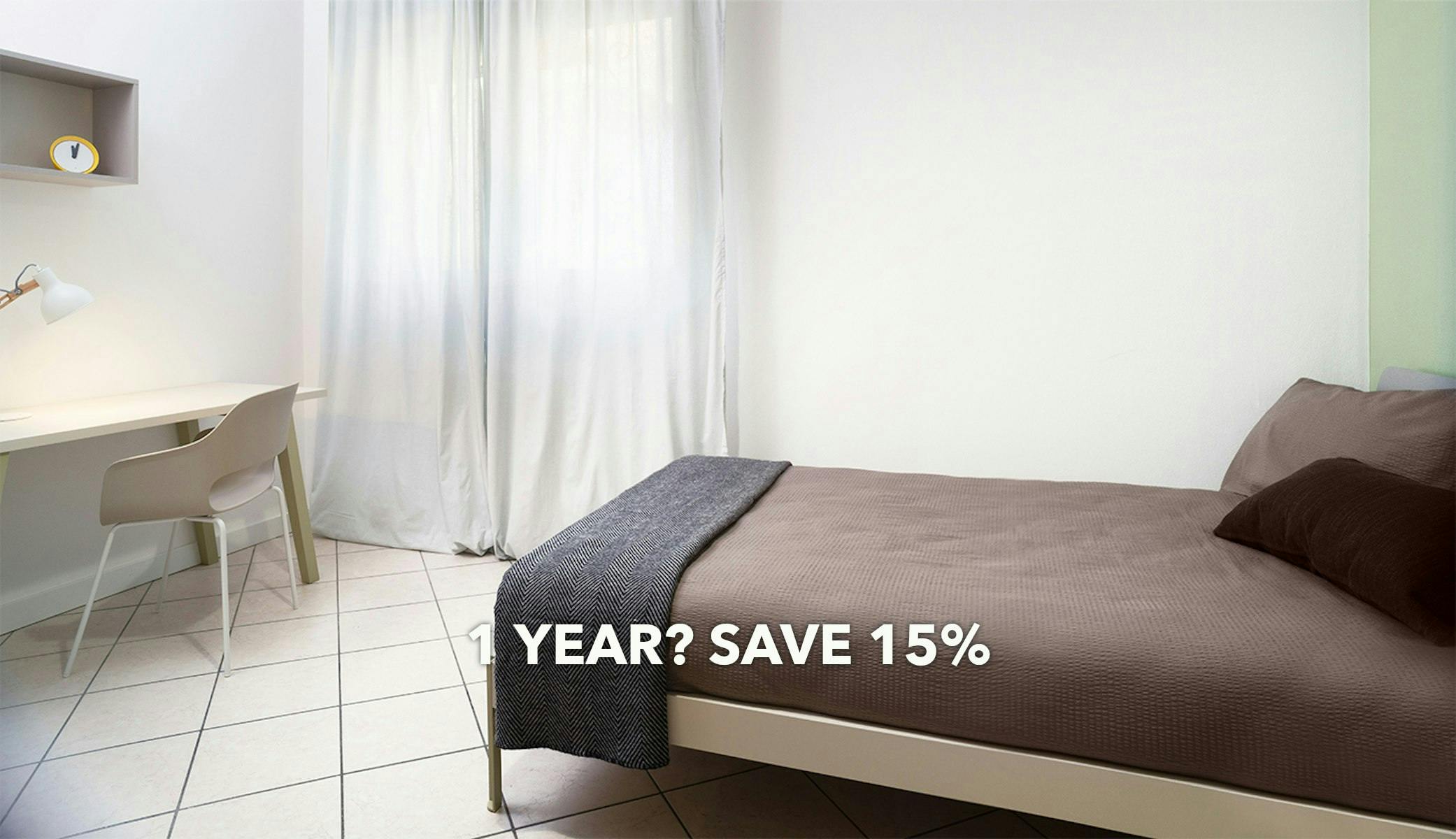 Bright Single Room with Attractive Design At our company, we love long-term stays! Enjoy significant discounts when you stay with us for 12 months. If you need to stay for less than 12 months but find someone to take over for the remaining period, both of you will benefit from our substantial discounts. Ask for a quote today and start saving! Room: Beautiful single room of 12sqm Designed specifically for students, it has a 120cm wide desk, a Babila chair Pedrali that allows you to spend the days sitting without the back being affected, a double bed with orthopedic mattress and a very comfortable 2-door wardrobe with internal drawers. Even the lights, warm and intense, were chosen to increase visual comfort and create a welcoming atmosphere. Apartment: This apartment, tastefully furnished, like its 3 single rooms, is the ideal solution for those looking for a quiet environment to share with only 2 roommates. The tastefully furnished kitchen is distinguished by a beautiful round table and white Area 51 chairs. The bathroom with shower is large and comfortable. You will live a few steps from the historic center, in an area served by the nearby supermarket, and the faculties less than 20 minutes on foot. We're a bit old-fashioned and still prefer deposits like the good old days, so we require the deposit payment to be made to the property manager's bank account immediately after completing the reservation process on HousingAnywhere...