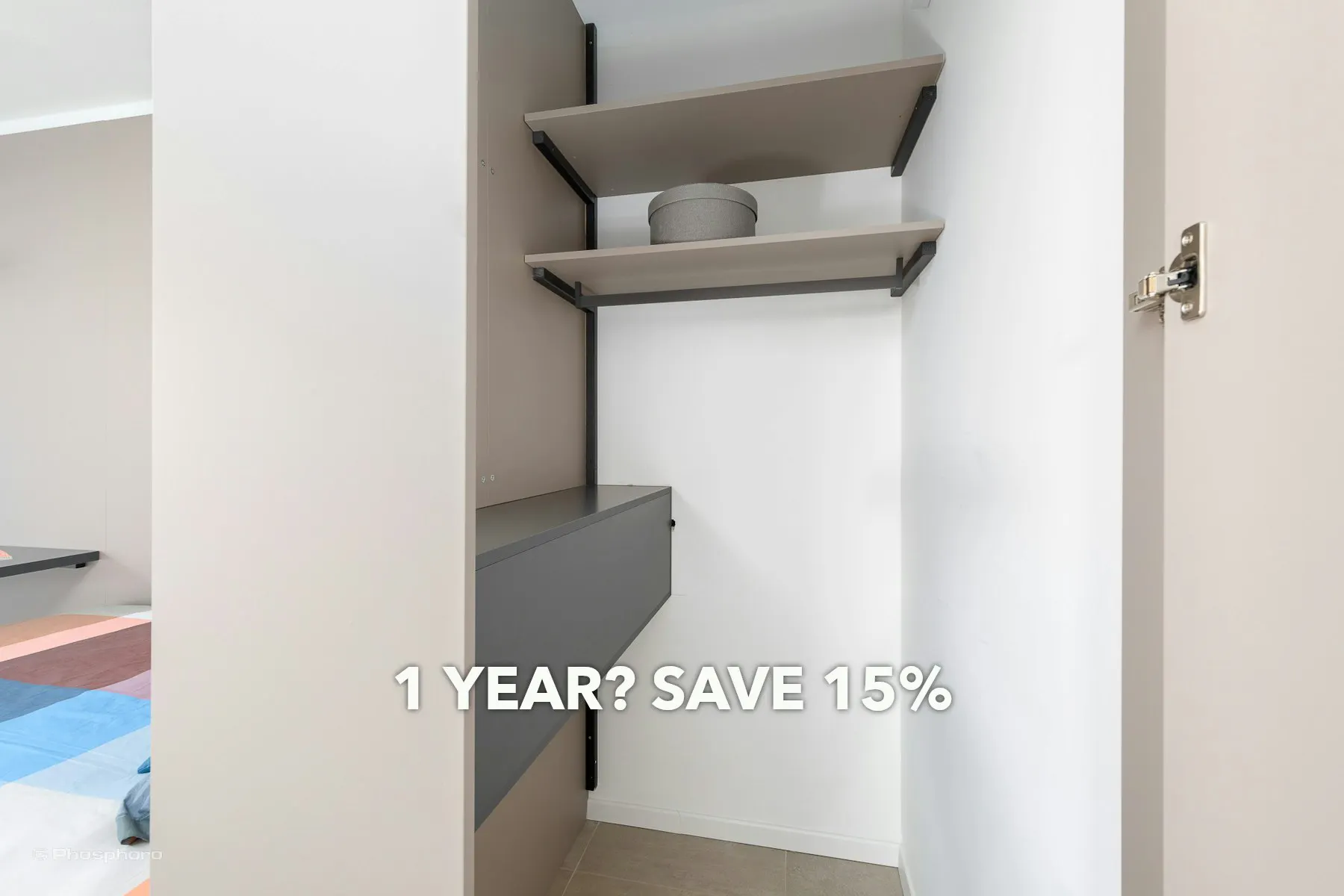 Bright Single Room with Attractive Design At our company, we love long-term stays! Enjoy significant discounts when you stay with us for 12 months. If you need to stay for less than 12 months but find someone to take over for the remaining period, both of you will benefit from our substantial discounts. Ask for a quote today and start saving! Room: This single room, with a minimal style, is the ideal solution for students looking for comfort and functionality during their university years. The room is equipped with a comfortable queen-size bed, a large desk and a spacious custom-made walk-in closet to make the most of every centimetre. The room is located on the first floor of the building and enjoys a panoramic view. *This room is on the 1st floor, the view and photos from the terrace refer to the 4th* Apartment: This 3-single apartment has everything you need! Located in a strategic position to reach the main faculties of Trento, the apartment is equipped with air conditioning, a common study area, a terrace, a laundry room with washing machines and dryers and a recharge point for electric bikes. Each single room is equipped with forced mechanical ventilation which guarantees good air quality, without having to open the windows. The apartment has a fully equipped kitchen with dishwasher, fridge, freezer and microwave oven. The three single bedrooms, all with balconies, offer privacy and comfort with double beds, two-door wardrobes with chest of drawers, desks with upholstered chairs and shelves for storing your books and personal items. The building has a small garden for common use, a covered area for bicycle parking and six parking spaces available for rent for only €50 a month each. We're a bit old-fashioned and still prefer deposits like the good old days, so we require the deposit payment to be made to the property manager's bank account immediately after completing the reservation process on HousingAnywhere...