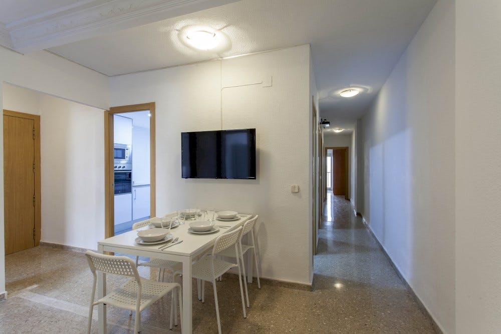 Ideal flat in Avenida de la Constitución Ideal flat in Avenida de la Constitución , next to Avenida de Primado Reig. It has 5 bedrooms, a complete bathroom, a fully equipped kitchen, and a spacious living room with a dining area. The flat is located in Benimaclet neighborhood, ideal for i nternational students and young workers. From here you can reach the university area in a short time, and it has a vibrant atmosphere you will love. Don't miss this opportunity! This neighborhood, also known as La Zaida, gets its name from the old palace of Zayd that was once where the Convent of Grata Dei is now. Located in the north of the city, it has a number of famous monasteries, including the Monastery of the Trinity. There are also two famous bridges in the neighborhood: the Pont de Sant Josep which was built in the 10th century, and the Pont de Fusta, which connects the Ciutat Vella with the Pont de Fusta metro stop. If you like parks, this is a great neighborhood for you because of the large number of parks throughout the area, including the Reial Gardens and Marxalenes Municipal Park. The area is well served by public transport by having four metro stations that connect you with the various lines of the Valencia metro network: - Metro Benimaclet – lines 3, 4, 6 and 7 - Tranvia - line 4 - Bus – lines 16 and 26 One of the advantages of living in Valencia is that you have the option of cycling by Valenbisi. For a minimum amount per year (30€) you have the option to cycling around Valencia with an ecological and healthy challenge available 24 hours 365 days in a year .It's easy to use: log in with your Valenbisi card in one of the more than 275 parking bikes, take one and move around the city freely. When you arrive to the destiny, you will find one parking near, and the only thing you have to do is park the bike and enjoy the city! - Walk arround Jardines de Viveros - Cross Jardines de Turia - Watch La Liga match at Camp de Mestalla (Valencia C.F.) - Nightlife Blasco Ibañez /Av. Aragón. - Breakfast at la Pergola - Sunny day at Malvarrosa Beach - Shopping at C.C. Arena - Don't smoke - Pets are not allowed - Parties are forbidden - Take out the trash daily - Short-term visits are allowed Double room in Avenida de la Constitución Double room in Avenida de la Constitución, near the city centre. It has a double bed of 135 cm, a single wardrobe, a big and a small chest of drawers, a desk, an armchair and a private balcony to relax. It also has its own door lock. The size of the room is 15 m2, the best option for international students and young workers. *Bedding is not included, only a matress cover is provided. Please keep in mind that the amount requested in the "other additional costs" field refers to tenant assistance coverage....