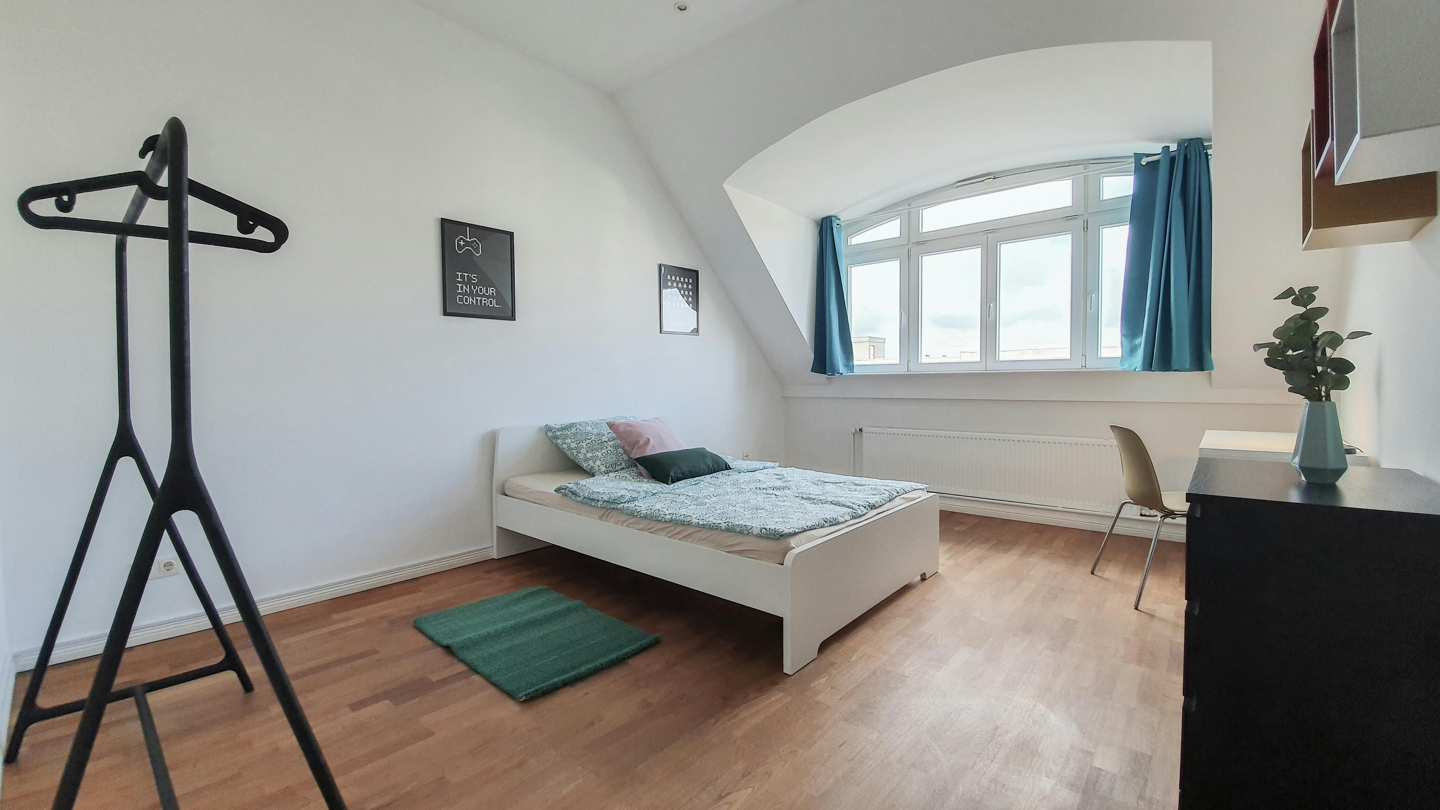 Room 6, Top Floor Fully furnished with a comfy bed, desk, chair, and wardrobe. Shared areas include a washing machine, kitchen equipment, and all daily essentials. 📍Registration (Anmeldung) is possible 💰All-inclusive rent (rent, heating, water, internet, GEZ) 📅Move-in is only possible on the 1st or 16th of each month. Flexible dates may be possible—let’s discuss :) 🔐Deposit: €950 (to be paid via bank transfer before move-in...