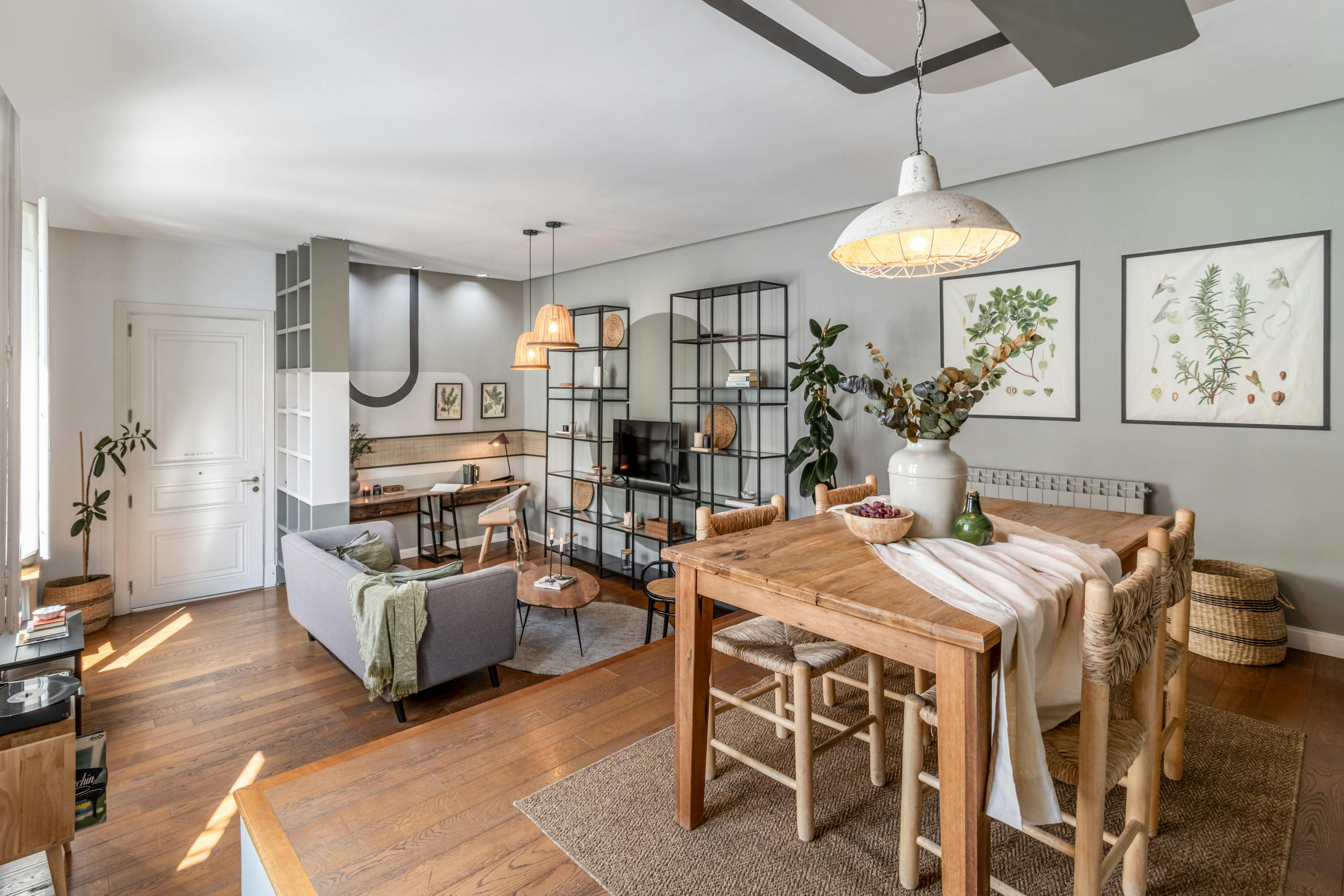 Alba is a modern pied-a-terre in Madrid's Centro district. The 90 square meter space has 1 bedroom and 2 baths. The design is sleek combining hues of blues and grays and an eclectic mix of metal and wood furniture. Upon walking into the space, find the living room with a lounge area and Smart TV. Against the parallel wall, there is a dedicated work area. The space benefits from natural light and the green plants add a vibrancy. The dining room, fitted with a large wooden table, leads to the kitchen. The kitchen is fully furnished with all cooking appliances and utensils. The bedroom has a minimalist but comforting decor. The queen-sized bed comes with brand new linens. The bathrooms have a full shower with new towels. *We welcome pets, fees are subject to apply. Guests will be informed of any additional charges in the final contract. *We cannot be held liable for any noises (construction, or street noise) done outside the apartment. We also cannot be liable for any rooms without air conditioning (all the rooms with air conditioner will be explicitly explained in our description). We will not accept any reservation cancellations or refund request related to these two issues. *Our in-house design team expertly selects all apartment furniture and decor to ensure the highest level of quality and comfort. As part of consistent home upkeep, design improvements, and photo staging, there may be minor differences in furnishings seen in the photos and what you find in the apartment. Inquire with a sales agent for any questions or doubts...