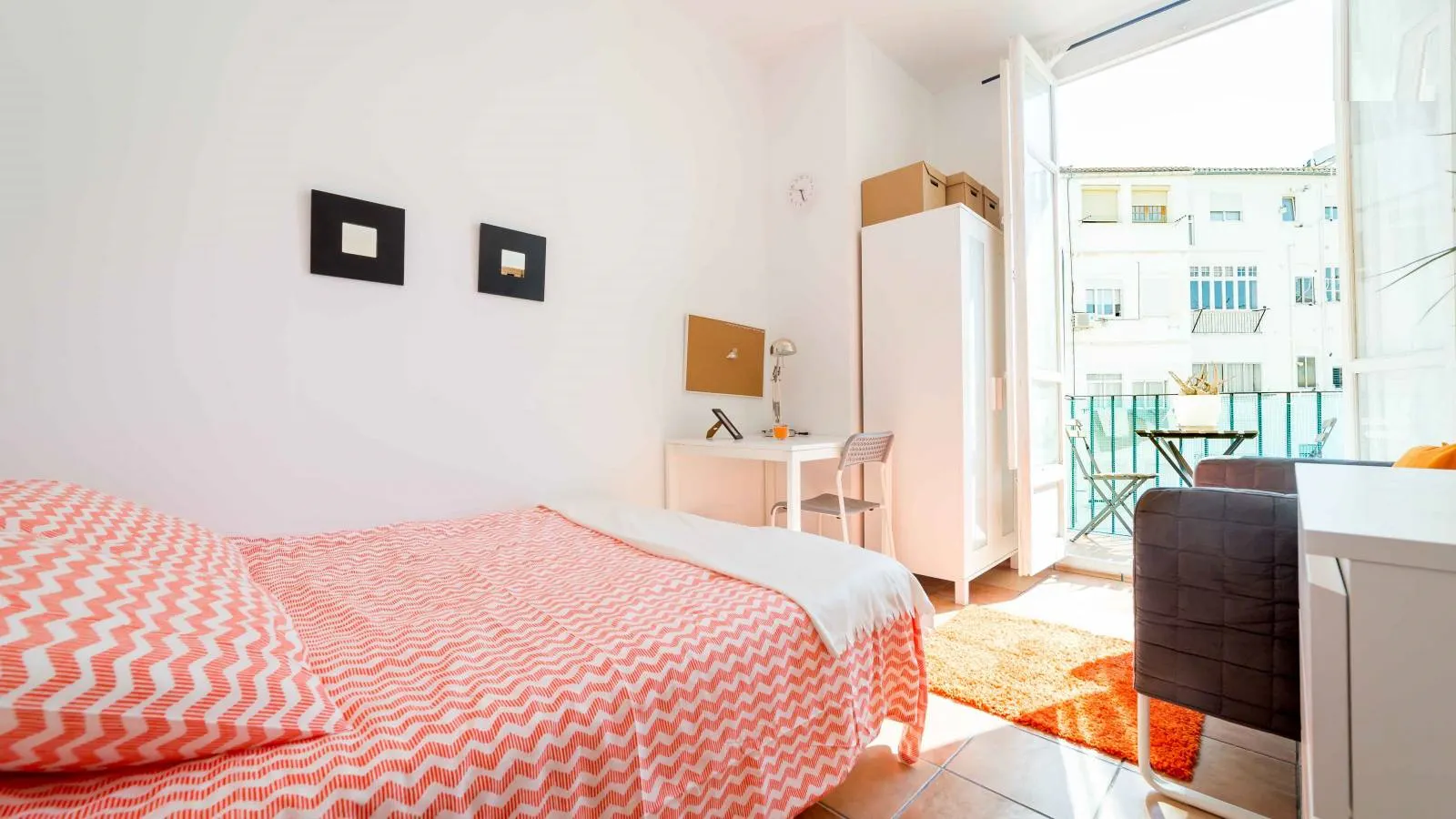 Room for rent with window view interior patio in shared apartment, Eixample Rooms are available to rent in a 5-bedroom, 1-bathroom apartment with a balcony situated in Valencia's L'Eixample neighbourhood. The interior of this spacious property is bright and stylish, decorated throughout with colourful furniture. The apartment has a large kitchen which is clean and fully equipped with modern appliances. L'Eixample is a central neighbourhood which is filled with places to eat, drink and socialise that suit all tastes and budgets. Tenants can walk to several famous monuments which include Valencia Cathedral, which is 20 minutes away. This apartment is ideal for those who like to travel, as Estació del Nord is 13 minutes away. Transportation Colón metro station is 9 minutes from the property and serves lines 3, 5, 7 and 9. There are several bus stops nearby. Details - Property type: apartment - Floor: 3rd - Elevator: yes - Wi-Fi installed: yes - Wi-Fi activated: yes 🕑 CHECK-IN TIMES: - Monday to Friday: 09:00h to 14:00h and 16:00h to 20:00h - Saturday: 09:00h to 14:00h - Sunday & Bank Holidays: Only opened the first Sunday of each month Please be aware that HousingAnywhere is an online booking platform. Therefore exchanging contact details and offering viewings is not possible. If you would like to reserve this accommodation, send me a booking request or a message and please mention your age and occupation. I look forward to meeting you...