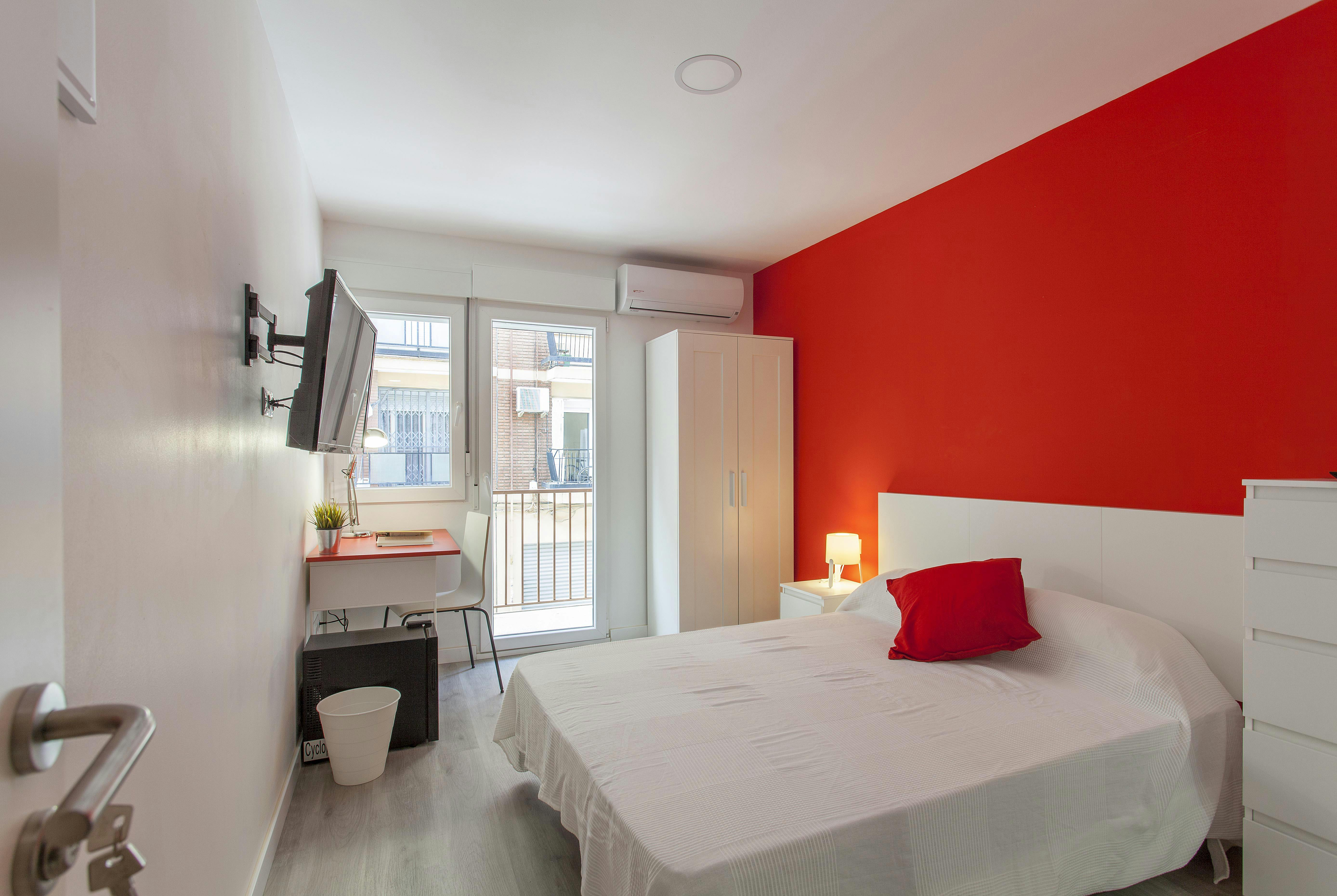 Nice room for rent in a shared apartment in Valencia! Make this exceptional property your new home! This property is characterized by its beautiful stylish design. The colorful interiors mix smoothly with the space, giving the place a vibrant atmosphere. The apartment features large windows that brighten the spaces, a fully equipped kitchen, a dining table with chairs, a washing machine. The room provides a comfortable bed, a Tv, a large closet with plenty of room for your clothes, a desk with a chair and lamp to study or get work done, a mini-fridge, a private bathroom, a private balcony, and whatever you bring to make this your room your own! Please be aware that HousingAnywhere is an online booking platform. Therefore exchanging contact details and offering viewings is not possible. If you would like to reserve this accommodation, send me a booking request or a message and please mention your age and occupation. I look forward to meeting you...