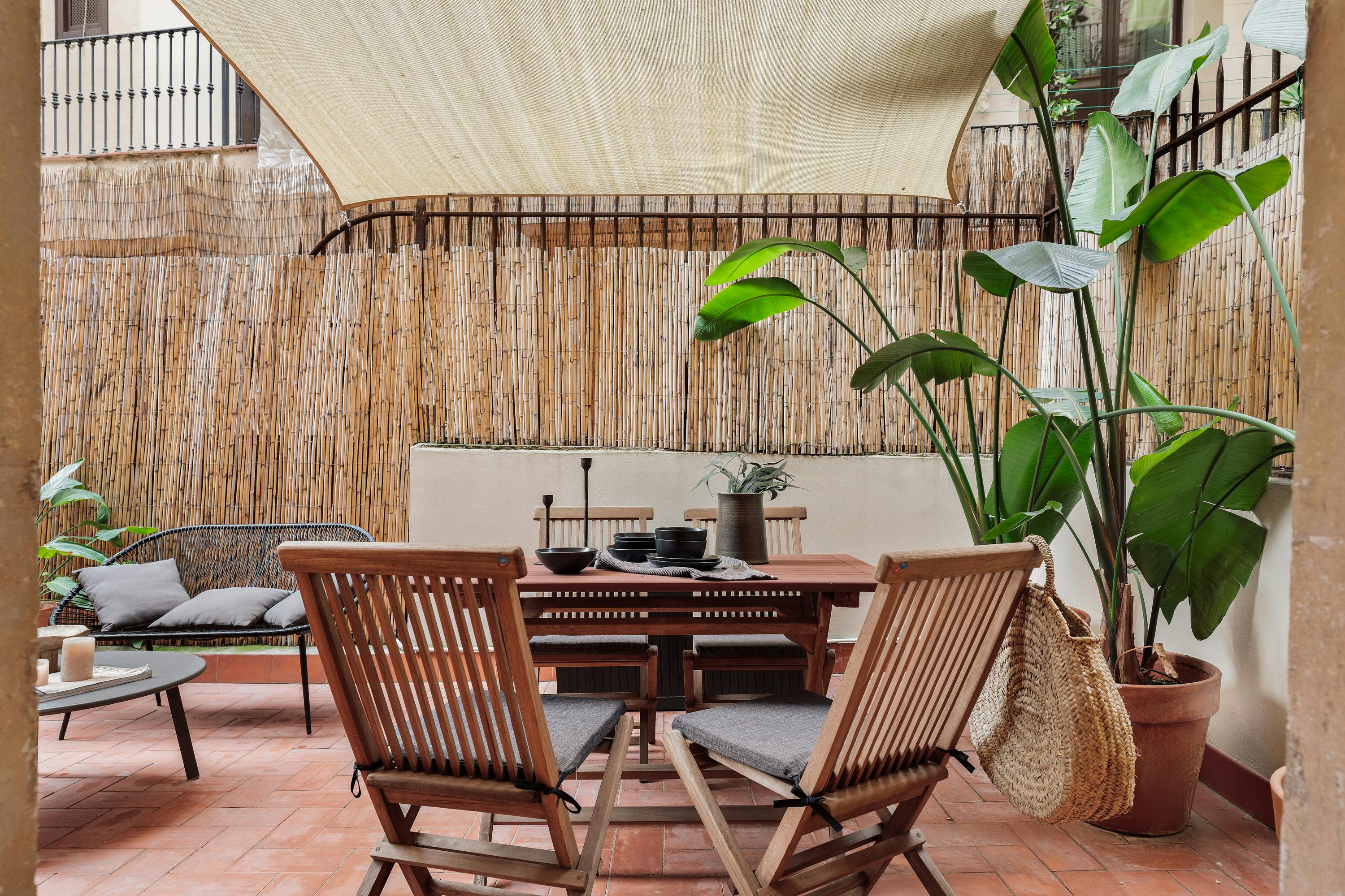 Komodo is a spacious 135 square meter apartment located in Barcelona’s famous Born neighborhood. The modern apartment has 3 bedrooms, 2 bathrooms and 3 separate outdoor spaces. The design uses beige hues and wooden decor to provide a soft look to the luminous space. Upon walking into the apartment, find a sleek kitchen to the right. The fully furnished space has a kitchen island that seats four people, as well as a small outdoor patio. The black modern design is balanced with impressive straw hanging lamps. Past the kitchen, there is a luminous living room composed of both a dining and lounge area. Some highlights of the space include the hammock, the custom-built black shelves and the patch-pattern wall painting adding a pop of color to the space. Back down the hallway, there is a first terrace with a dining area. The hallway is fitted with a custom-built workspace. The first bathroom comes with a full shower. The m(hidden)edroom comes with an ensuite bathroom and access to the large terrace. There is a queen-sized bed with a hand-made decoration hanging above. The ensuite bathroom comes with a full shower. Out on the 12 square meter terrace, find tropical plants and an outdoor lounge set-up, complete with a hanging chair and outdoor shower. From the terrace, step into the second bedroom, which comes with a canopy queen-sized bed and ample closet space. The third bedroom has a single bed and a handmade rustic wooden desk. All bed and bath linens are provided. *We welcome pets, fees are subject to apply. Guests will be informed of any additional charges in the final contract. *We cannot be held liable for any noises (construction, or street noise) done outside the apartment. We also cannot be liable for any rooms without air conditioning (all the rooms with air conditioner will be explicitly explained in our description). We will not accept any reservation cancellations or refund request related to these two issues. *Our in-house design team expertly selects all apartment furniture and decor to ensure the highest level of quality and comfort. As part of consistent home upkeep, design improvements, and photo staging, there may be minor differences in furnishings seen in the photos and what you find in the apartment. Inquire with a sales agent for any questions or doubts. *This accommodation may only be used for stays longer than 31 nights for personal purposes such as holiday, recreational, or leisure. We may request documentation proving your permanent residence and the reason for your stay in Catalonia, and may cancel the reservation if it does not meet the legal requirements. The information provided may be submitted to the relevant registry and/or administrative authority in accordance with Catalan regulations....
