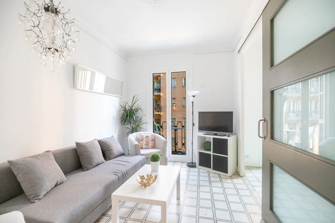 *Available only for rentals longer than 32 days for leisure, holiday, recreational or cultural purposes, and only when accompanied by the corresponding documentation that verifies such purpose.* Fantastic apartment furnished with great taste and detail of about 63 m2 in the Calle Aragó, very central, in the heart of the Eixample Esquerra and very well connected with the rest of the city, surrounded by all types of transport. The day area consists of a pleasant living room, quite bright with exit to a nice balcony where you can enjoy the fantastic climate of the city. The kitchen comes equipped with all the appliances, all of them top of the range. The night area consists of two double rooms all of them exterior with lots of light and wardrobes. The apartment has 1 complete bathroom with bathtub. The apartment has air conditioning and heat pump heating. Wifi included in the rental price. The location is unbeatable. A few steps away from the renowned EAE Business School and from the Urguell and Rocafort subways. The area is surrounded by shops, gyms, restaurants and parks. The building has an elevator SERVICES INCLUDED: - Check in and Check out in the apartment - WIFI included in all our apartments - Maintenance included (For damage due to normal use) - Fully equipped and furnished apartments - Multilingual manager assigned during the entire stay TERMS: - Deposit for stays shorter than 3 months: 1 month's rent - Deposit for stays longer than 3 months: 2 month's rent - Maximum Stay: 11 months - Registration Possible only for stays longer than 6 months - The utilities of Gas, Water and Electricity are not included in the renting price LOCAL TAXES (I.T.P.): 0.5% of the total reservation (Monthly cost calculated as "other" in the Rent summary. The total amount will be collected before the check-in). Be aware that HousingAnywhere is an online booking platform. Therefore exchanging CONTACT DETAILS and offering VIEWINGS is NOT POSSIBLE. The platform keeps your payment safe until 48 hours after your move-in date. In case the accommodation is not as advertised, you will be entitled to get a refund. “BOOKING PROCESS: After the reservation is confirmed, you will be required to pay the remaining payments directly to the advertiser before the handover of the keys...