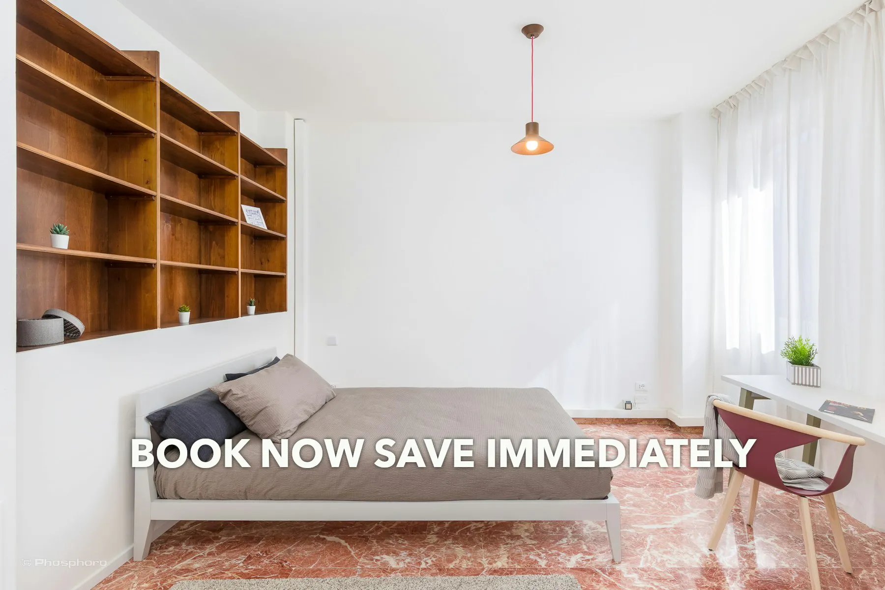 BOOK NOW SAVE IMMEDIATELY Secure with €100, and pay the deposit within February 15th + save €150 on the first month by renting until August 31st! Spacious and Modern Single Room with Balcony At our company, we love long-term stays! Enjoy significant discounts when you stay with us for 12 months. If you need to stay for less than 12 months but find someone to take over for the remaining period, both of you will benefit from our substantial discounts. Ask for a quote today and start saving! Room: The largest room in this apartment features a magnificent red marble floor, which adds a touch of unparalleled elegance. Like all the other rooms, this room has been specially designed for students, taking into account their needs. You will find a spacious 135 cm desk, perfect for studying comfortably and having all the space you need. The ergonomically designed Fox Pedrali chair will ensure you have a correct posture and will help you prevent back pain. The 3-door wardrobe, built into the hallway, will allow you to keep your room always tidy, with ample space to store your clothes. The queen-size bed is equipped with a high-quality orthopedic mattress, which will offer you maximum comfort and a restful sleep. You'll also find ample shelving, perfect for organizing and displaying your book collection. Apartment: This prestigious apartment as well as the rooms that compose it are furnished with care thinking about the needs of the 6 tenants who live there. The all-new kitchen has a double-width fridge to ensure everyone has their own space. The induction plates allow you to heat water in seconds, the dishwasher will help keep the kitchen tidy. We have installed a washer-dryer so it will no longer be necessary to hang out clothes and there is also a spacious closet for storing all bulky items. The estimated expenses refer to a virtuous consumption profile. We're a bit old-fashioned and still prefer deposits like the good old days, so we require the deposit payment to be made to the property manager's bank account immediately after completing the reservation process on HousingAnywhere...