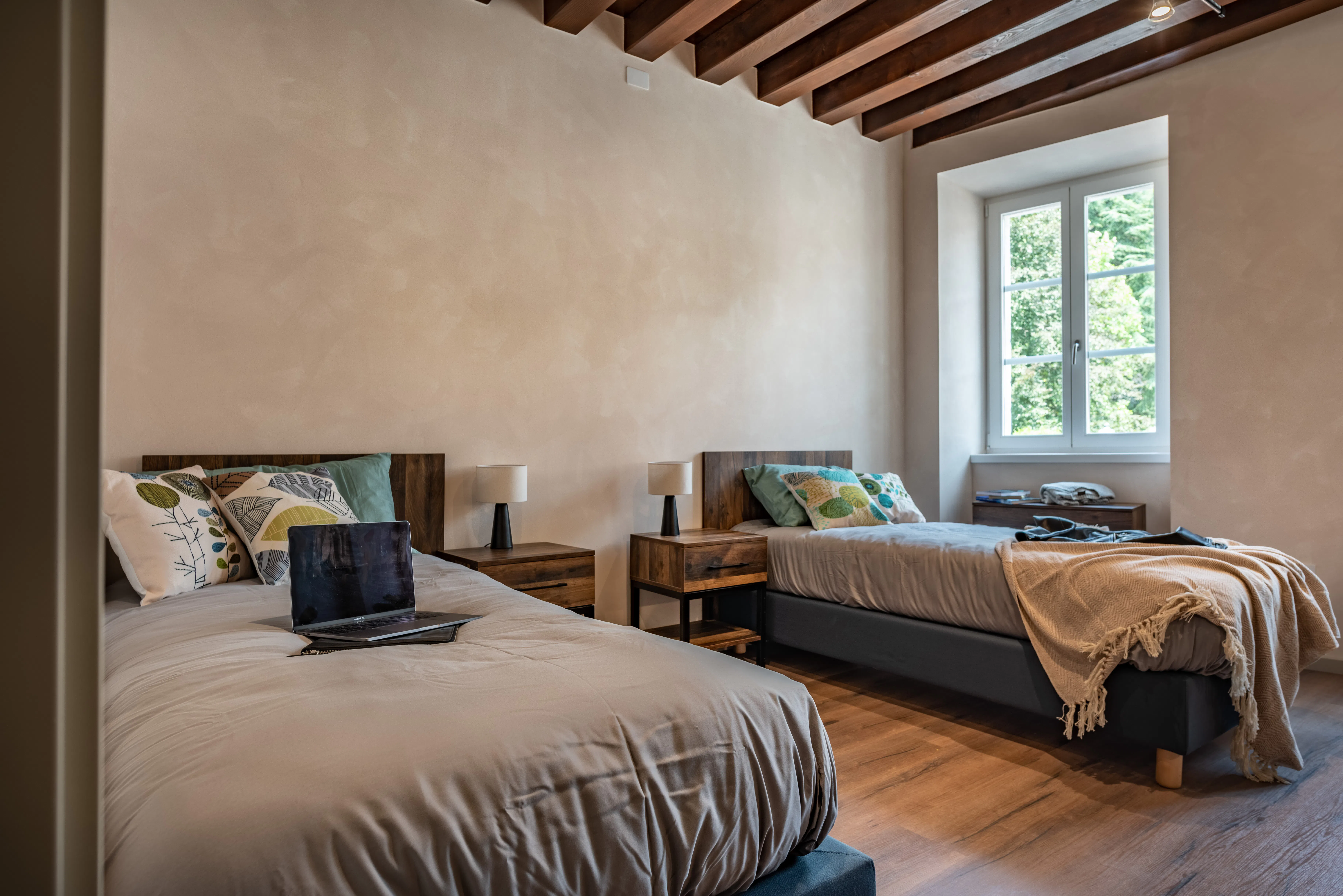 L'immobile è situato in una zona strategica della città Rovereto: all’inizio di via Bettini, la via principale della città, ma soprattutto a pochi metri dalle Facoltà Universitarie cittadine e dal famoso Mart, il museo di arte moderna e contemporanea di Trento e Rovereto. Palazzo di rilevanza storica, completamente ristrutturato tra il 2020 ed il 2021, è dotato di ascensore e di zona comune per ricovero di biciclette. L’appartamento, posto al primo piano e con meravigliosa vista, è luminoso ed ottimizzato negli spazi essendo la ristrutturazione pensata appositamente. Si sviluppa su una superficie di 115 mq ed è composto da 4 stanze molto spaziose ed un’area comune che include una cucina ultraccessoriata dotata di TV 50 pollici e da un frigo Kingsize moderno. Ogni stanza ha il suo bagno privato con accesso esclusivo. E’ presente WI-FI fibra ultraveloce e una zona dedicata ad uso lavanderia con lavatrice ed asciugatrice. La stanza è luminosa e dotata di due finestre, oltre che provvista di mobilio completo: letto singolo, scrivania, poltroncina ergonomica, comodino, tendaggi, specchio, scarpiera e libreria....