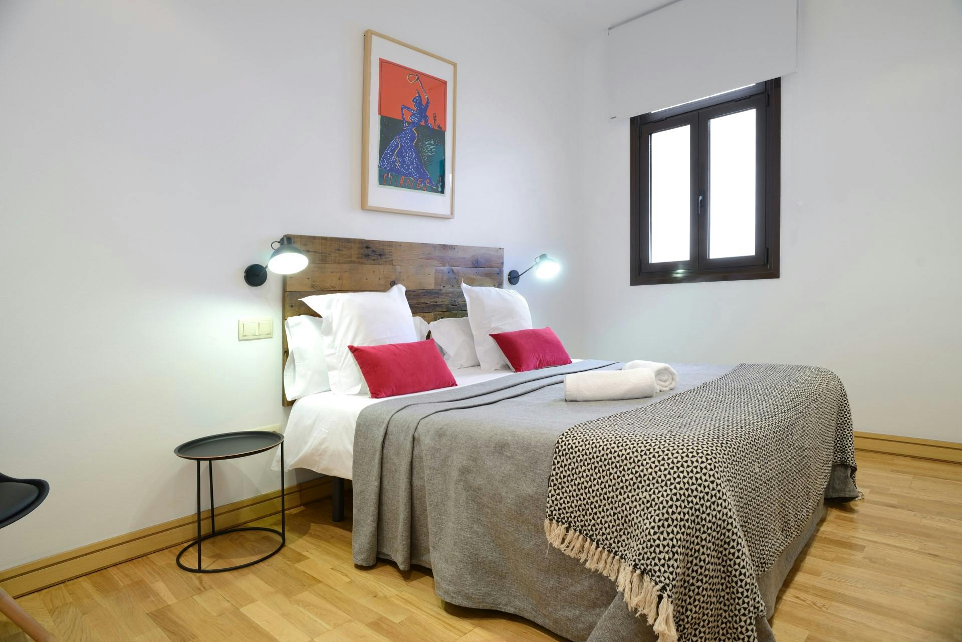 Modern one bedroom, one bathroom apartment with a private balcony and fully equipped kitchen in the central Justicia neighborhood, in the heart of Madrid. It has a bedroom equipped with a double bed. It also has a living room with a sofa bed, TV and a dining area. The open kitchen is perfectly equipped with a ceramic hob, oven, microwave, fridge, washing machine, etc. and the apartment also has one bathroom. In addition, the apartment has a nice balcony to relax on. It is an apartment with Wi-Fi, a TV and modern facilities. It has wooden floors, modern exposed brick décor, and heating and air conditioning. The building has an elevator and is located in the central neighborhood of Justicia, perfect for walking around the city center and well connected by public transport by metro and bus. 💸 The Administration Fee changes depending on the duration of the contract: - For 1-3 months - 60% of a monthly payment + VAT - For 3-4 months - 80% of a monthly payment + VAT - For 4-5 months - 100% of a monthly payment + VAT - For 5-12 months - 120% of a monthly payment + VAT ⚠️Bedding is included Please be aware that HousingAnywhere is an online booking platform. Therefore exchanging contact details and offering viewings is not possible. If you would like to reserve this accommodation, send me a booking request or a message, and please mention your age and occupation. I look forward to meeting you...
