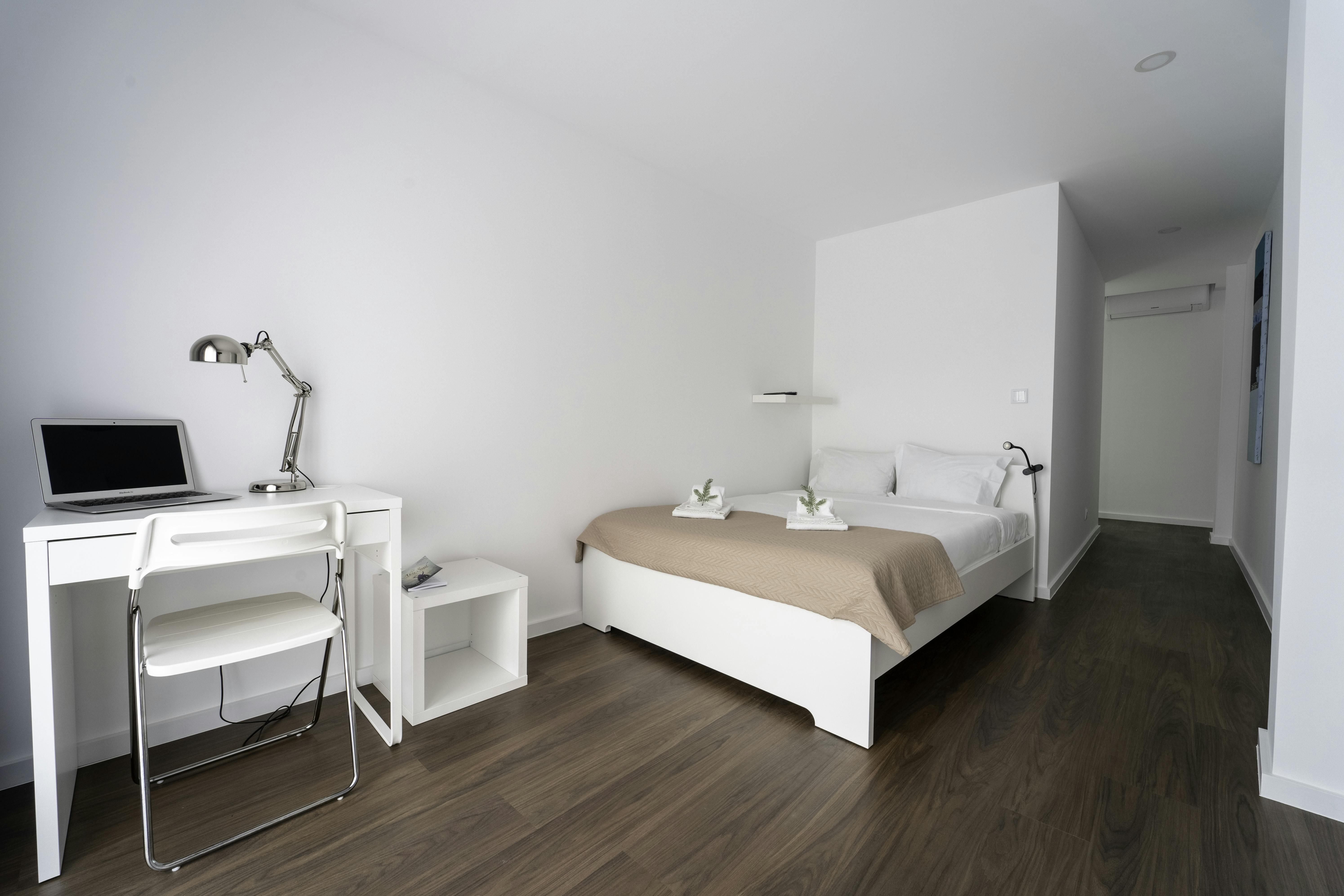 A021-R2 - D. Pedro V(1) O apartamento D. Pedro V(1) está localizado numa das ruas mais icónicas de Braga, com fácil acesso ao centro da cidade, ao centro comercial Braga Parque e à Universidade do Minho. O apartamento D.Pedro V(1) é moderno, arejado e acolhedor, próximo a supermercado, talho, cafés e restaurantes. Localiza-se no 3.o andar do prédio, sem elevador. O estacionamento livre na rua. O apartamento está totalmente mobilado e equipado, pronto a habitar, para que não tenha despesas. As áreas comuns – cozinha, hall e lavandaria – são partilhadas com os restantes hóspedes. A cozinha está equipada com artigos essenciais para o dia a dia, como: frigorífico, micro-ondas, fogão, forno, cafeteira elétrica e sanduicheira. O apartamento também dispõe de uma máquina de lavar roupa. É um apartamento duplex que dispõe de 3 quartos com casa de banho privativa no 1.o piso e um estúdio T1 com entrada dependente no 2.o piso. Todos os quartos possuem casa de banho privada, ar condicionado, televisão de ecrã plano, roupeiro e secretária de trabalho. Este quarto, com varanda partilhada, dispõe de cama de casal, roupeiro, secretária de trabalho, ar condicionado, televisão de ecrã plano e casa de banho privada. O arrendamento do quarto inclui os seguintes serviços: contas de água, eletricidade, gás; acesso à internet; duas mudas de roupa de cama e atoalhados para usufruir durante a sua estadia e ainda limpeza semanal dos espaços comuns. Serviços adicionais como limpezas do quarto ou cabaz de boas-vindas sob consulta...