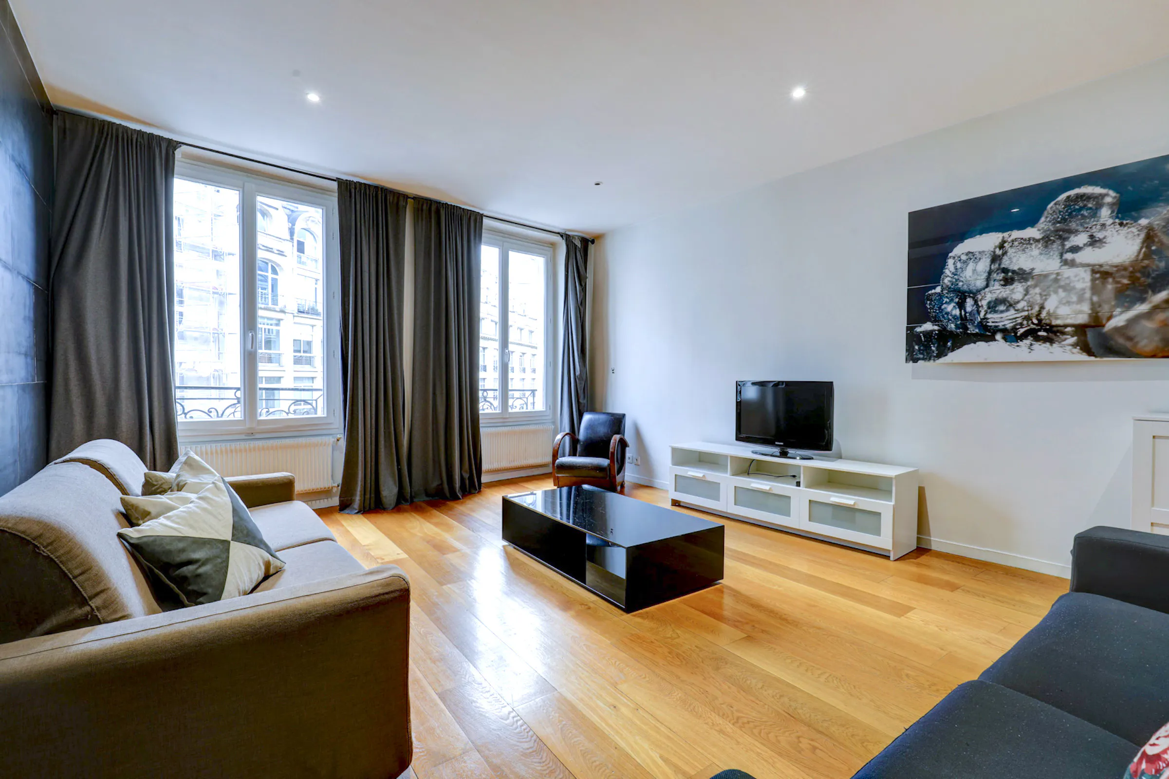 Experience living in the heart and center of Paris with this spacious 1-bedroom, 78 sqm apartment located on the 4th floor of a safe and secure residential building without an elevator. Feel at home with this Upper Key fully furnished flat located by Montorgueil Quarter. There is a space that can be used as a living, dining or home office area. It is furnished with a sofa bed, and a dining table and chairs. The flat comes with a high-speed Wi-Fi connection so you can stay in touch with family and friends, check your emails or stream your favorite shows and find that work-life balance. The fully equipped kitchen has a sink, toaster, electric tea kettle, full refrigerator, stove, drip coffee machine, microwave oven, dishwasher and more. Dishes, cutlery, pots and pans and cooking utensils are provided as well. The apartment has a combination clothes washer and dryer. A vacuum, broom, mop and cleaning supplies are also available in the apartment. The property is heated throughout the winter months with central heating. The bedroom faces the interior courtyard and comes furnished with a king size bed and superior quality mattress. All bedding and linens are provided and professionally laundered. This property best suited for 2 tenants but can host up to 4 guests. The flat has one en-suite shower room with a combination bathtub/shower and sink. The toilet is located in a separate water closet accessible via the hallway. You will find a small sample soap, shampoo, toilet paper and paper towels to start off your stay, as well as bath towels for the number of guests. The charming Montorgueil district is the ideal location for those looking to immerse themselves in the city’s atmosphere. The famous market street of Rue Montorgueil is steps from your front door, and offers a wide range of restaurants, boulangeries, cafes, butchers, cheese shops, fruit stalls and more! Both the Pompidou Center and the Louvre Museum are within walking distance to the flat. The beautiful Palais Royal and its secret gardens are also close by. With its close proximity to the Metro station Bourse, Châtelet-Les Halles or Etienne Marcel (Lines 3, 4 & RER A/B/D), accessing other areas of Paris is very easy. Just hop on the train to reach Opera, the Eiffel Tower, Champs Elysees and Arc de Triomphe, Montmartre and the Sacre Coeur and more! The Les Halles Station is a 5 minutes’ walk as well, giving you a quick link to Charles de Gaulle and Orly Airports from central Paris. Once your booking is confirmed, you will receive information with details regarding arrival, in-stay and departure procedures. A member of our welcoming team will personally greet you to let you in and show you around the property. We’ll remain at your service during the entire stay with 24/7 guest support so you can make maintenance requests, schedule additional cleanings and linen changes (for an additional fee), extend your stay and more. Tenant safety and cleanliness are always our top priorities. Our professional housekeeping staff cleans and sanitises each property between each reservation, following a rigorous checklist from public health authorities and cleaning and disinfecting all high touch areas and hard surfaces. Additional items to note: - This property can be booked for a minimum duration of one month up to one year or longer. - The property may vary slightly from the photos due to recent renovations, furniture rearrangements or other. - A refundable deposit of the value of one month’s rent plus charges will be required by move-in. - Utilities and expenses like water, electricity, gas, Wi-Fi, local taxes and insurance are covered by your accommodation fee as long as they do not exceed € per month - This property is strictly non-smoking, and pets are not allowed. Parties and excessive noise will not be tolerated. - As part of the rental procedure, we may ask for documents to prove the identity of the tenants and occupation, including ID, work contract, proof of income or other....