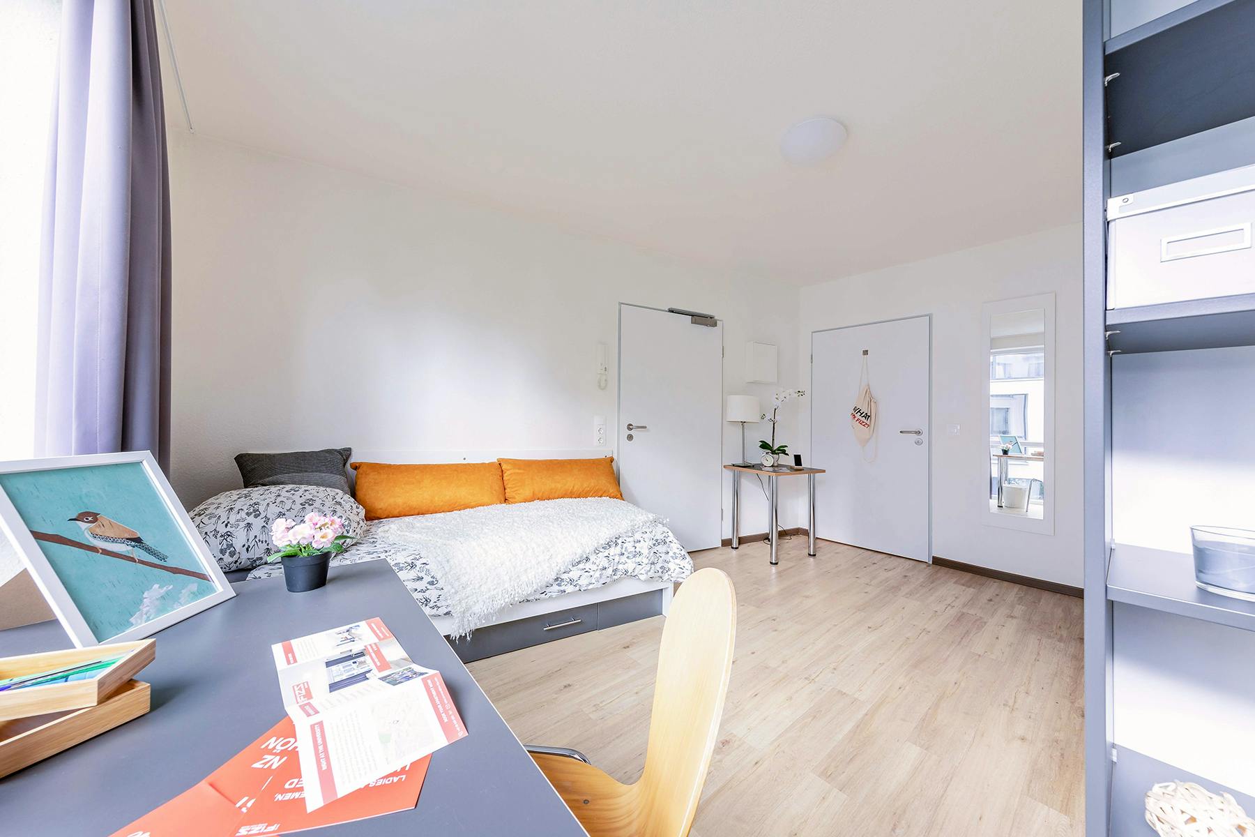 LIVE FULLY. A Student Residence. Just Better! Welcome to our student residence in Bremen. With 335 modern, fully furnished single and double studios, spread over three house sections, students from all over the world will find a new home - in one of the most magnificent port cities in Europe! We have the perfect combination between your own living space and a great community: Meet your roommates at a table football tournament in the Community Lounge or watch a movie in the Movie Lounge. Study together in the study room or have a barbecue outside on the huge green area behind the building. Explore culinary highlights with your fellow roommates in thecommunity kitchen. Everything in a central location in the north of the city, just a few minutes' walk from the campus, with a tram and shops directly opposite. Take a look at our 3D tour and get a first impression of what your life with us could look like. SIMPLY PULL IN AND FEEL COMFORTABLE Our house manager Frank will take care of your concerns from the moment you move in and, for example, receive your parcels or provide you with free loan equipment (such as vacuum cleaners or irons). A central main entrance, to which you have access via a chip, and video surveillance of all entrances and exits ensure additional security. Comfortable living just a stone's throw from the university Your apartment offers you a bright living room with bed including mattress, desk with chair, cloakroom with mirror, light-proof curtains, intercom and generally extra storage space. The pantry kitchen is equipped with two ceramic hobs, a combination microwave, fridge with freezer compartment, a sink and counter. The modern tiled shower room with underfloor heating offers additional storage space in addition to the toilet, washstand with mirror. All services and ancillary costs such as heating and hot water as well as internet are included in the rent. You can not only choose the size of your apartment, but also which floor you want to live on. Choose between our single studios between 17-22m2 or move into one of our double studios between 36-39m2 if you need a little more space. There is sure to be just the right apartment for you. *The photos shown are sample images. ** Our studios are available in different sizes and prices. Please visit our website for more information. LOCATION • Direct route to the University of Bremen (on the opposite side of the street) and to the city centre • Drug stores and supermarkets, restaurants in the immediate vicinity YOUR HIGHLIGHTS • All-in rent (including electricity, heating and water costs and internet at a monthly flat rate • Common rooms: get to know your roommates while cooking in the communal kitchen, chilling out in the community lounge with gaming area or while buffing in the study rooms - including washing and drying rooms. • Bicycle cellar: Park your bike safely in the lockable bicycle cellar. • Underground car park: Your car is also kept safe and dry. • Parcel acceptance during opening hours at the reception • Free rental of household appliances (vacuum cleaner, iron, etc.) • Exclusive partner deals: save outside at selected locations with your Member Card • Regular events and activities • A community that gives you the opportunity to make friends out of neighbors - Deposit: ✔3x Cold Rent -Admission Fee: 6 months ✔ 249€ / 12-36 months ✔ 99€ **Please note that the rent written on the listing is (hidden) rent. There is a surcharge for quieter apartments facing the courtyard or for apartments on a higher floor level. Deposit may change depending on your chosen rental period or features of your preferred apartment. If you are interested, do let us know and we will send you the offer! Please be aware that HousingAnywhere is an online booking platform. Therefore, exchanging contact details and offering viewings is not possible. If you would like to reserve this accommodation, send me a booking request or a message, and please mention your age and occupation. I look forward to meeting you...