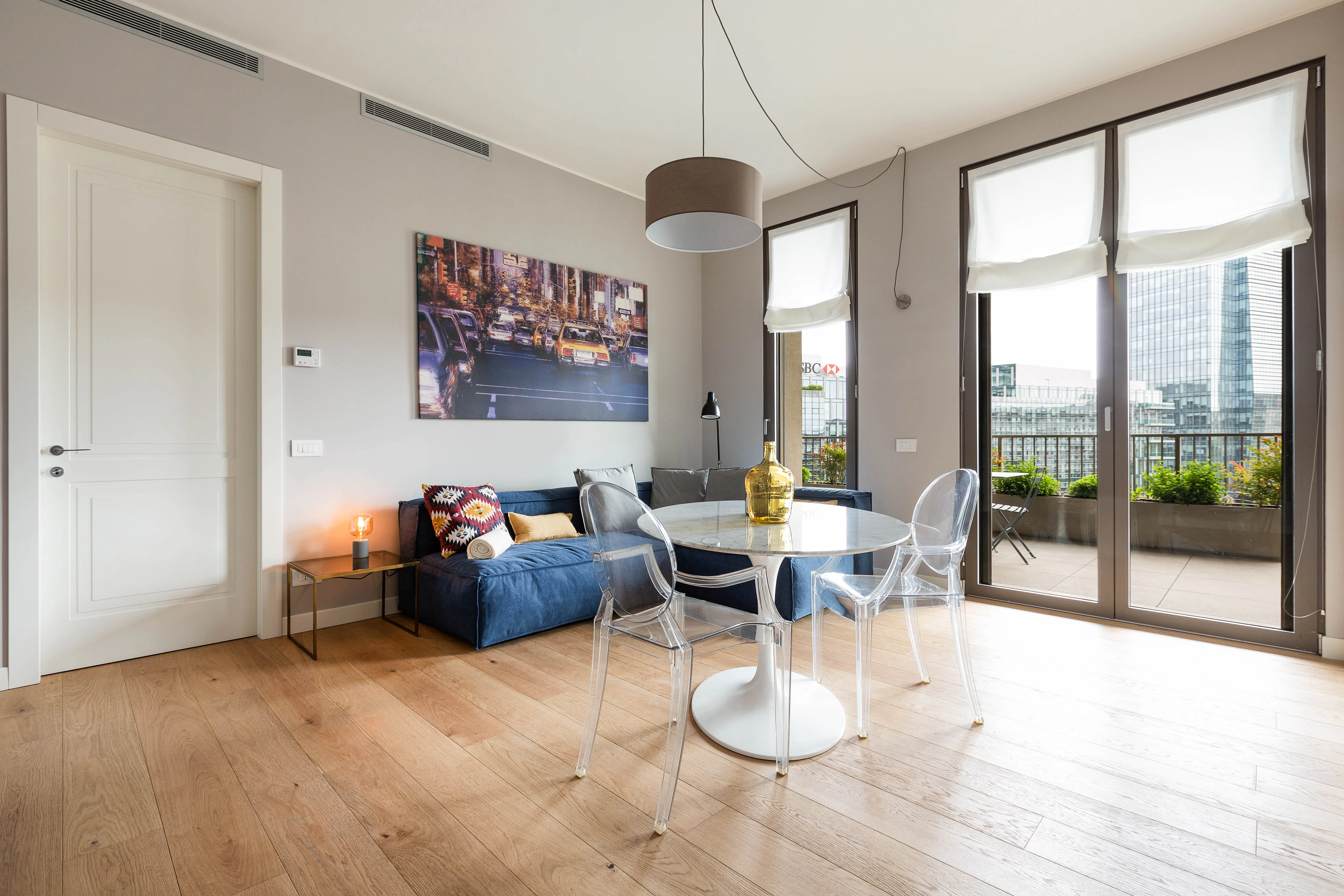 Simply fabulous apartment located a few steps from Piazza Gae Aulenti and the Bosco Verticale, in a brand new exclusive building, with concierge service, gym, indoor and outdoor swimming pool and spa with sauna, turkish bath and emotional shower. Located on the seventh floor, preciously refined in each detail and elegantly furnished, air-conditioned, consisting of large and bright living area, open kitchen with induction hobs, dressing room, utility room, bathroom with shower and double bedroom with walk-in wardrobe. The whole flat overlooks a wonderful and dazzling terrace with a breathtaking view of the Milan skyline. Fantastic, unique location: really close to Corso Como, the Bosco Verticale, the Isola district, Corso Garibaldi and Brera and its finest and elegant surroundings, perfectly served by public transport, a few steps away there are supermarket, bars and restaurants, the Fatebenefratelli hospital, pharmacy and all the boutiques for the best shopping in Milan. Please note: deposit equals to 2-months rent for stays longer than 6 months. Utilities included up to €75 per month. Tourist visa not accepted to sign contract. Valid passport and “codice fiscale” are required for contract registration. If the signatory is a company, the rent will be increased by 30%. The contract can be provided with a leasing period of a max 18 months, then, in case of longer stays, it can be renewed. In case of early termination of (hidden) contract, an additional fee of 100€ is required and a 30 to 60 days early notice, depending on the length of the contract. Final cleaning price included according to the conditions of the apartment at check-out. Cleaning service optional: 40€ per hour. Bed linen and towels are provided for free. Languages spoken: English, Italian, Frenc...