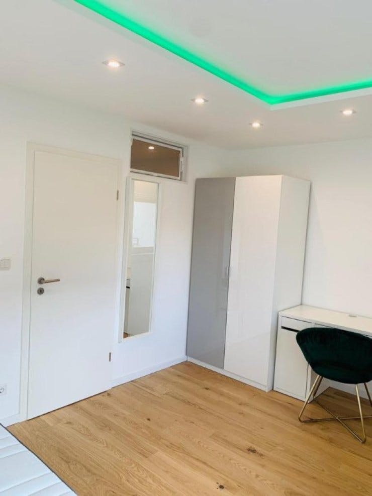 Room Description This spacious and modern private room on Ursbergerstraße in Munich offers a generous living area of 22 m2. The room is elegantly furnished with a comfortable bed, a large wardrobe, and a desk, providing ample space for both relaxation and productivity. The 70m2 apartment is shared with two other housemates, fostering a welcoming and communal environment. The room features contemporary interiors, central heating, and high-speed WiFi, ensuring a pleasant and well-connected living experience. Common Areas Residents have access to a stylish bathroom, a separate toilet, and a fully equipped kitchen with essential appliances. The apartment also includes a washing machine, adding convenience to daily living. Neighborhood Ursbergerstraße is located in a peaceful yet well-connected area of Munich. The neighborhood offers excellent public transportation options, making it easy to explore the city and access various local amenities. It combines a tranquil residential environment with close proximity to Munich’s vibrant cultural and social scenes, making it an ideal choice for both students and professionals seeking comfort and convenience. Please note: The keys can only be handed over and you can only move in if the deposit has been demonstrably transferred to the provider before the move-in date...