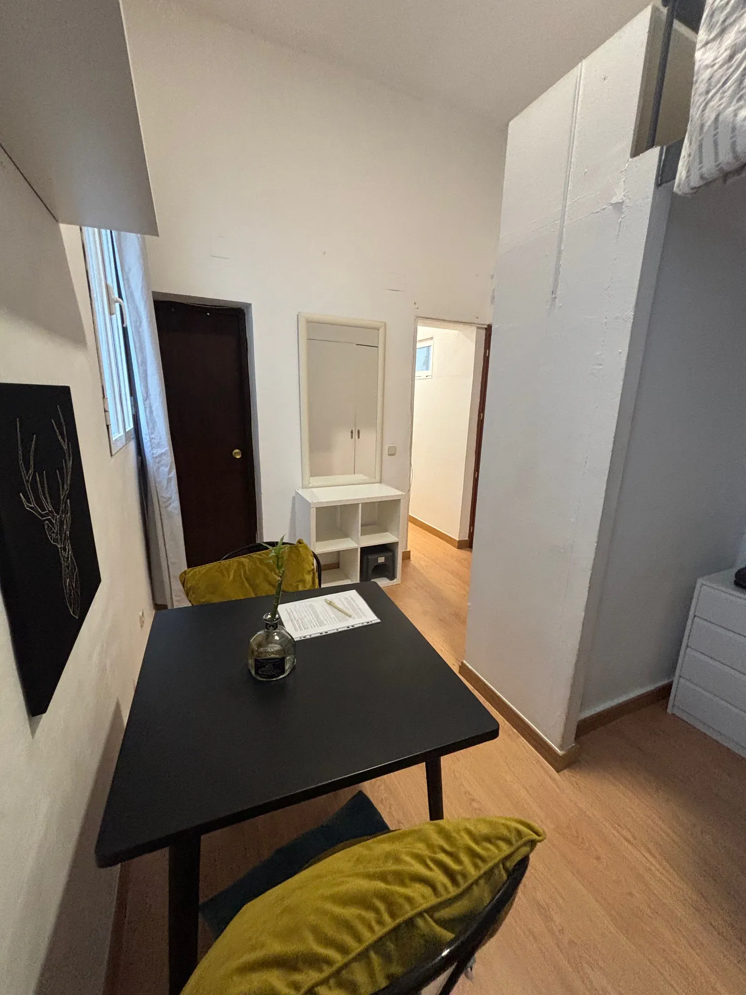 This studio is in the main square of Madrid, the place to be! Kitchenette (with kitchenware, washing machine, refrigerator, etc). Double bed in a comfortable loft, with ladder. Downstairs there is a sofa bed or a second bed (can live two people who are not a couple). Private bathroom is inside the studio. High ceilings, smooth walls, bright and quiet (overlooks courtyard, you can't hear anything). Closets and furniture. Perfect for a couple or two companions. All utilities are included up to 120 euros/month...