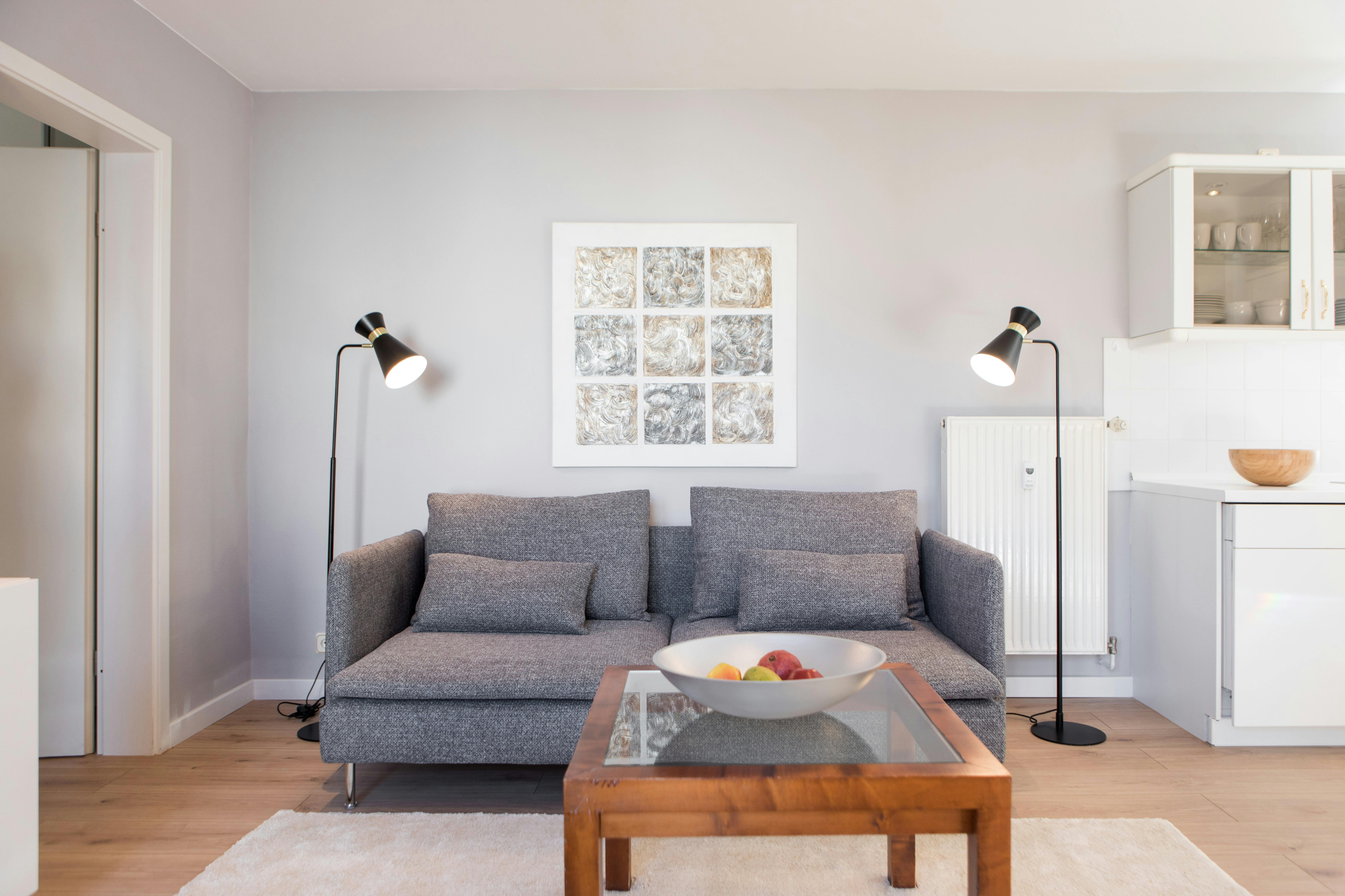 Die Wohnung liegt absolut ruhig im 4.Stock des Hinterhauses eines Berliner Altbaus mit Blick in den begrünten Hof. Trotzdem ist man mitten im quirligen Leben. Das Apartment ist voll ausgestattet: - Wohnbereich mit Sofa, Sessel, Esstisch, Arbeitsplatz, Stühle, Flachbildschirm-TV - Schlafzimmer mit 140 x 200 cm Bett und Schrankwand/Spiegel - offene Küche mit Spülmaschine,Kühlschrank,Gefrierschrank, Waschmaschine inkl. Trockner, Geschirr, Kochutensilien, Toaster, Wasserkocher, Nespresso-Maschine - Bad mit Wanne und Glasduschwand, Handtücher, Fön - Flur mit Putzgeräten, Bügeleisen, Bügelbrett, Wäschetrockner, zusätzlicher Schrank und Kommode Die Wohnung liegt im sehr beliebten Szene-Bezirk Prenzlauer Berg, direkt an der Kulturbrauerei, die U-Bahn Station Eberswalder Strasse ist nur 5 Minuten zu Fuß entfernt. Im Preis sind die GEZ-Gebühren, WLAN, eine Reinigung ein Mal im Monat und die üblichen Nebenkosten enthalten. Lediglich der Strom wird separat nach eigenem Verbrauch berechnet. Einzug ist immer am Anfang eines Monats und Auszug am Ende eines Monats. This two room flat is in an absolutely quiet location in the rear of an old Berlin building with a view of the leafy courtyard, 4.floor. Nevertheless, you are right in the middle of the great life around. The flat is fully equipped: - living area with sofa, dining table, workstation, chairs, flatscreen-TV - bedroom with a double bed 140 x 200 cm, closet wall - open kitchen with dishwasher, fridge, freezer, washing machine incl. dryer, crockery, cooking utensils, toaster, kettle, Nespresso machine - bathroom with bathtub and glass shower screen, towels, hairdryer - hallway with cleaning utensils, iron, ironing board, additional wardrobe and chest of drawers The price includes GEZ fees, WLAN, cleaning once a month and all usual costs Only the electricity is charged separately according to your own consumption. Moving in is allways at the beginning of a month, moving out at the end of a month. The apartment is located in the very popular area Prenzlauer Berg. The distance to the underground "Eberswalder Strasse " is only 5 minutes per feet....