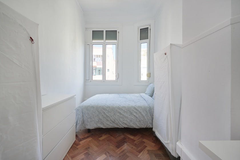 Casa Sampaio I – Room 9 Casa Sampaio I is a residence in the centre of Lisbon with sixteen (16) rooms and four (4) bathrooms (3 of them with a shower and 1 with just a toilet), oriented towards students and young professionals. It is located close to Marquês de Pombal. ROOMS The rooms are furnished with a complete bed and set of sheets, duvet, and pillow with cover, bedside table with lamp, wardrobe, chest of drawers, desk with bench and dustbin. In-room TV is available on request. COMMON AREAS The common area has a dining table with chairs and access to the clothesline. There is unlimited wireless Internet throughout the house, and cable TV in all rooms and in the common area. The house is cleaned up to twice a week by the cleaning staff. KITCHEN The kitchen has three (3) refrigerators with a freezer, stove, oven, and microwave and is fully equipped with crockery, glasses, cutlery, pots, pans, and a set of knives. LOCATION This location allows the house to benefit from a varied local commerce network, making use of a Continente supermarket, mini-markets, cafes, restaurants, butchers, pharmacies, and banks and it is just a step away from the Parque Eduardo VII. TRANSPORT In a few minutes, it is possible to reach the metro stations of Marquês de Pombal (Yellow and Blue Lines). The house is in a central location, which allows you to be served with a wide range of public transport with connections to all parts of the city, including the airport: metro, bus, and taxis! Please, read carefully the whole description before sending a booking request: ✅ YOUR MONTHLY RENT INCLUDES: - Utilities (Up to €40/month of water, electricity, gas). - WiFi. - Cable TV. - Weekly cleaning of common areas of the house. - Maintenance service. - Telephone service for emergencies. 💵 REQUIREMENTS: + Security Deposit (equivalent to the amount of one month's rent and paid during the check in). + Admin fee (Paid per person once during the check in). + Extra cost of 50€/month in case the accommodation is intended for 2 persons. 📅 MONTHLY CONTRACT: Payment for whole months, regardless of your move-in and move-out date. 🕛 CHECK-IN TIME: - Monday to Friday - from 8 am until 6 pm. 🌆 OPTIONAL EXTRA SERVICES (under request) - Check-in outside working hours or during weekends - 34.99 € (Working hours: Monday to Friday - from 8 am until 6 pm). - Fridge inside the room (minimum stays of 6 months) - 14.99 € p/month. - Special cleaning of the room 49.99 € (1 X per week). 🔊 RENTAL CONDITIONS: - There is a rental contract that must be signed and respected by the tenant(s). - For the rental contract it is necessary a copy of an ID Document and fiscal number. - During the booking process it is mandatory to be indicated who are the persons that are going to rent the accommodation and do the check-in. - The security deposit must be paid during the check-in and it will be returned if the accommodation is left in the same condition as received. The security deposit can't be part of the last month's rent. - The rent must be paid until the last day of the previous month. - Every tenant is responsible for keeping the accommodation clean and in good conditions. - Visitor(s) policy: Yes (Under request and approval). - Parties are not allowed. - Loud noises are not allowed after 22:00. - Smoking inside the property is not allowed. - Pets or animals are not allowed. We carry out contracts, issue receipts within the scope of the law and assist with obtaining the Residence Visa!...