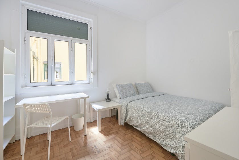 Casa Sampaio I – Room 10 Casa Sampaio I is a residence in the centre of Lisbon with sixteen (16) rooms and four (4) bathrooms (3 of them with a shower and 1 with just a toilet), oriented towards students and young professionals. It is located close to Marquês de Pombal. ROOMS The rooms are furnished with a complete bed and set of sheets, duvet, and pillow with cover, bedside table with lamp, wardrobe, chest of drawers, desk with bench and dustbin. In-room TV is available on request. COMMON AREAS The common area has a dining table with chairs and access to the clothesline. There is unlimited wireless Internet throughout the house, and cable TV in all rooms and in the common area. The house is cleaned up to twice a week by the cleaning staff. KITCHEN The kitchen has three (3) refrigerators with a freezer, stove, oven, and microwave and is fully equipped with crockery, glasses, cutlery, pots, pans, and a set of knives. LOCATION This location allows the house to benefit from a varied local commerce network, making use of a Continente supermarket, mini-markets, cafes, restaurants, butchers, pharmacies, and banks and it is just a step away from the Parque Eduardo VII. TRANSPORT In a few minutes, it is possible to reach the metro stations of Marquês de Pombal (Yellow and Blue Lines). The house is in a central location, which allows you to be served with a wide range of public transport with connections to all parts of the city, including the airport: metro, bus, and taxis! Please, read carefully the whole description before sending a booking request: ✅ YOUR MONTHLY RENT INCLUDES: - Utilities (Up to €40/month of water, electricity, gas). - WiFi. - Cable TV. - Weekly cleaning of common areas of the house. - Maintenance service. - Telephone service for emergencies. 💵 REQUIREMENTS: + Security Deposit (equivalent to the amount of one month's rent and paid during the check in). + Admin fee (Paid per person once during the check in). + Extra cost of 50€/month in case the accommodation is intended for 2 persons. 📅 MONTHLY CONTRACT: Payment for whole months, regardless of your move-in and move-out date. 🕛 CHECK-IN TIME: - Monday to Friday - from 8 am until 6 pm. 🌆 OPTIONAL EXTRA SERVICES (under request) - Check-in outside working hours or during weekends - 34.99 € (Working hours: Monday to Friday - from 8 am until 6 pm). - Fridge inside the room (minimum stays of 6 months) - 14.99 € p/month. - Special cleaning of the room 49.99 € (1 X per week). 🔊 RENTAL CONDITIONS: - There is a rental contract that must be signed and respected by the tenant(s). - For the rental contract it is necessary a copy of an ID Document and fiscal number. - During the booking process it is mandatory to be indicated who are the persons that are going to rent the accommodation and do the check-in. - The security deposit must be paid during the check-in and it will be returned if the accommodation is left in the same condition as received. The security deposit can't be part of the last month's rent. - The rent must be paid until the last day of the previous month. - Every tenant is responsible for keeping the accommodation clean and in good conditions. - Visitor(s) policy: Yes (Under request and approval). - Parties are not allowed. - Loud noises are not allowed after 22:00. - Smoking inside the property is not allowed. - Pets or animals are not allowed. We carry out contracts, issue receipts within the scope of the law and assist with obtaining the Residence Visa!...