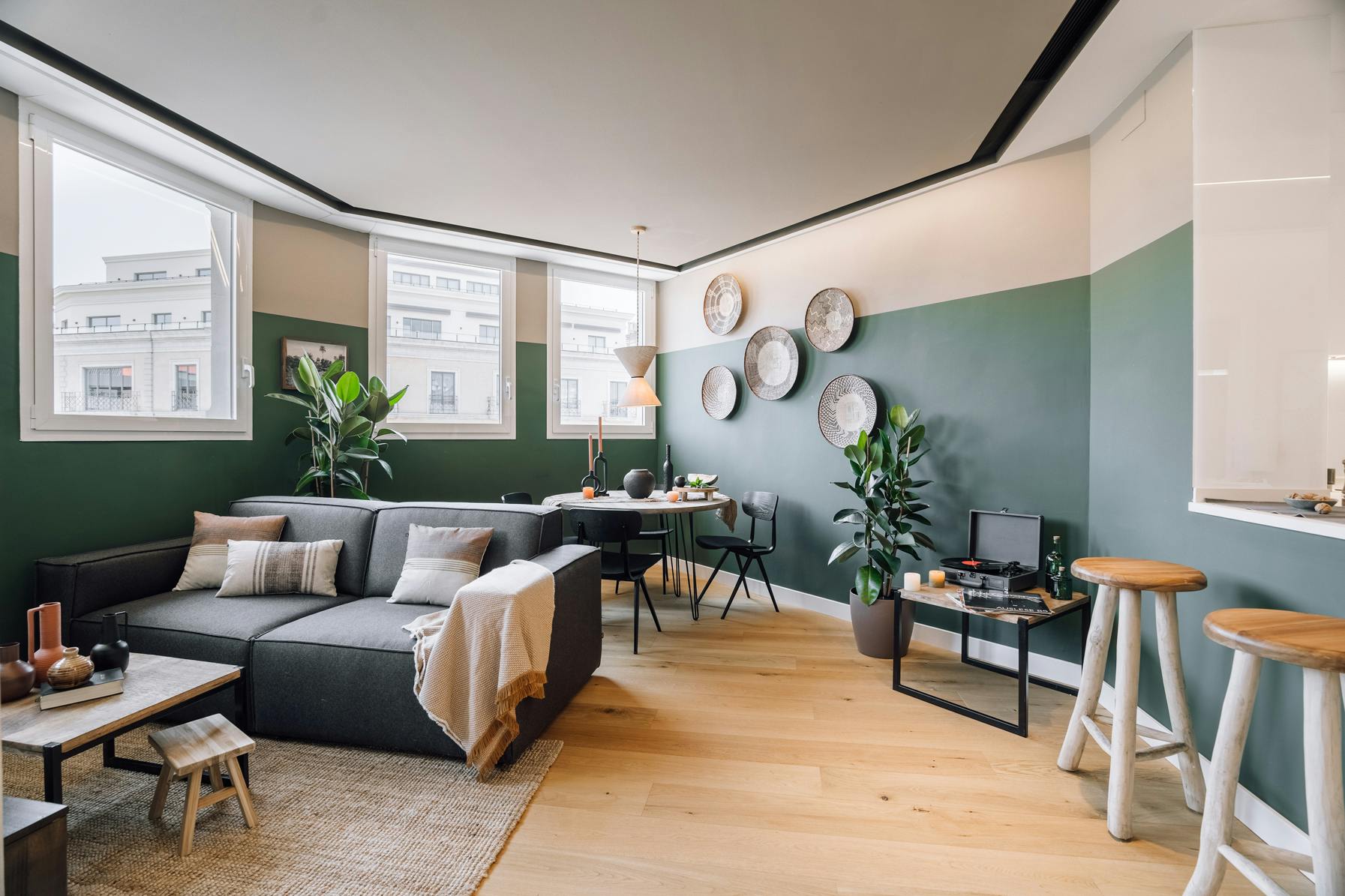 Batwa is found on Passeig de Gràcia, one of Europe’s most famous luxury shopping streets, and is a five-minute walk from Plaça de Catalunya, the iconic center of Barcelona. Located on the fourth floor, the spectacular views it offers will not let you forget this magnificent setting. The kitchen, along with the living and dining areas, are open plan, and fully equipped with all necessary appliances, from a smart TV to a record player. The artfully designed furniture, combined with the dark green and beige color scheme, help create the feel of your own secluded spot in the jungle. The bedroom boasts plenty of natural light, and is furnished with a queen-size bed, all the furniture you need for storage, and a writing desk to complete your work space. The stylishly designed bathroom is complete with all the fittings, including a bathtub. The apartment is completely ready to go. Right down to the soft, fresh bed linens, for a perfect night’s sleep. *We welcome pets, fees are subject to apply. Guests will be informed of any additional charges in the final contract. *We cannot be held liable for any noises (construction, or street noise) done outside the apartment. We also cannot be liable for any rooms without air conditioning (all the rooms with air conditioner will be explicitly explained in our description). We will not accept any reservation cancellations or refund request related to these two issues *Our in-house design team expertly selects all apartment furniture and decor to ensure the highest level of quality and comfort. As part of consistent home upkeep, design improvements, and photo staging, there may be minor differences in furnishings seen in the photos and what you find in the apartment. Inquire with a sales agent for any questions or doubts. *This accommodation may only be used for stays longer than 31 nights for personal purposes such as holiday, recreational, or leisure. We may request documentation proving your permanent residence and the reason for your stay in Catalonia, and may cancel the reservation if it does not meet the legal requirements. The information provided may be submitted to the relevant registry and/or administrative authority in accordance with Catalan regulations....