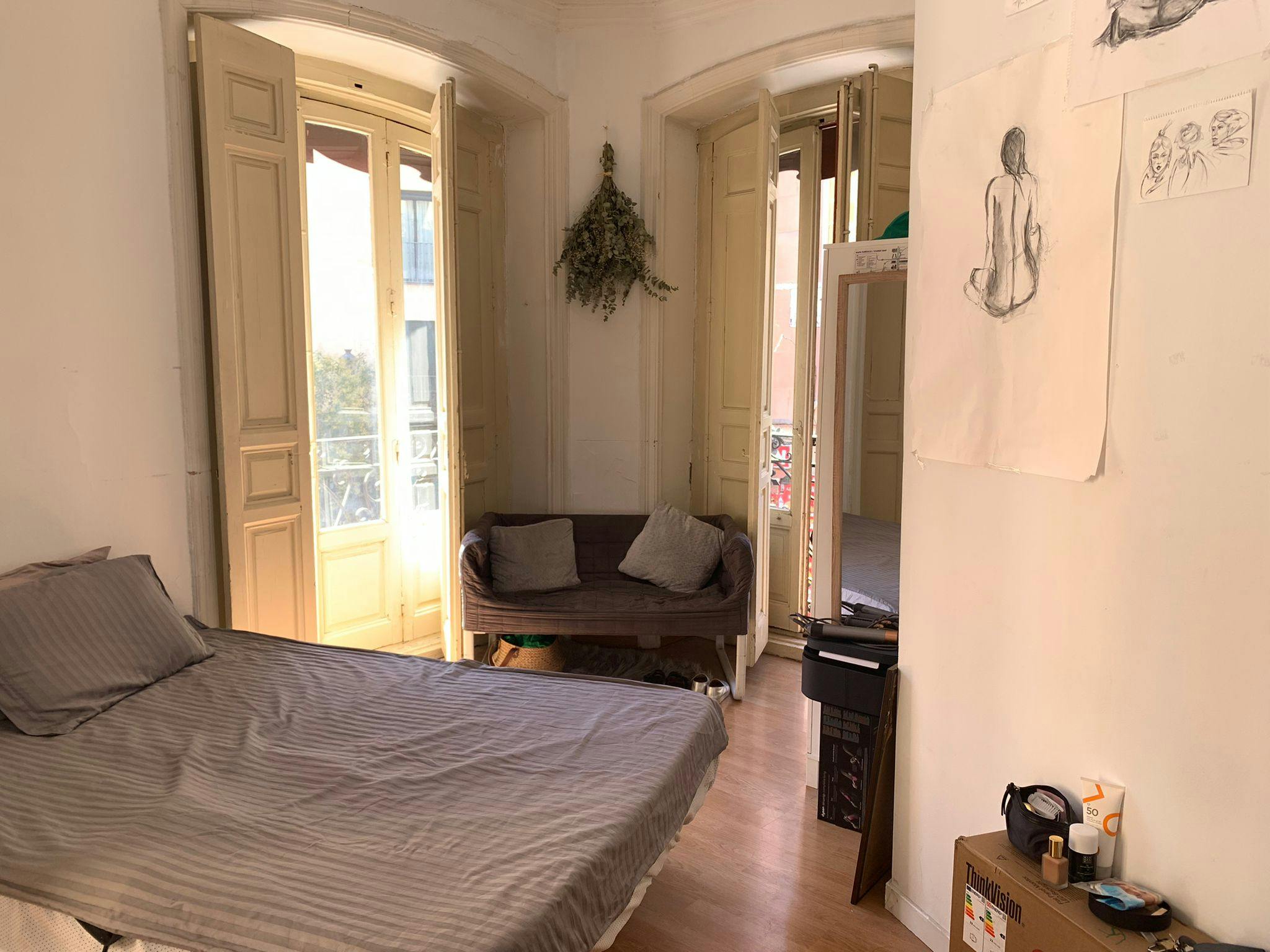 Apartment in the center of Madrid, consists of 7 bedrooms, all with window and balcony, two bathrooms, kitchen and heating with electric radiators, is fully furnished, is a 1st floor without elevator, located in Madrid center, 2 minutes from the Puerta del Sol, in the area of Huertas, very well connected with metro lines (1, 2 and 3) bus stop at the door (lines M1, 50, 6, 26, 32, 65, N26), Central area next to the Plaza de Jacinto Benavente. In the heart of the neighborhood of letters, neighborhood of young people, intercultural, dynamic and cosmopolitan character, ideal to live day to day with all the comforts that may be needed a few steps away, banks, boxes and all kinds of shops that make life easier. This central location makes it excellently connected by public transport, Very good communication with the university city....