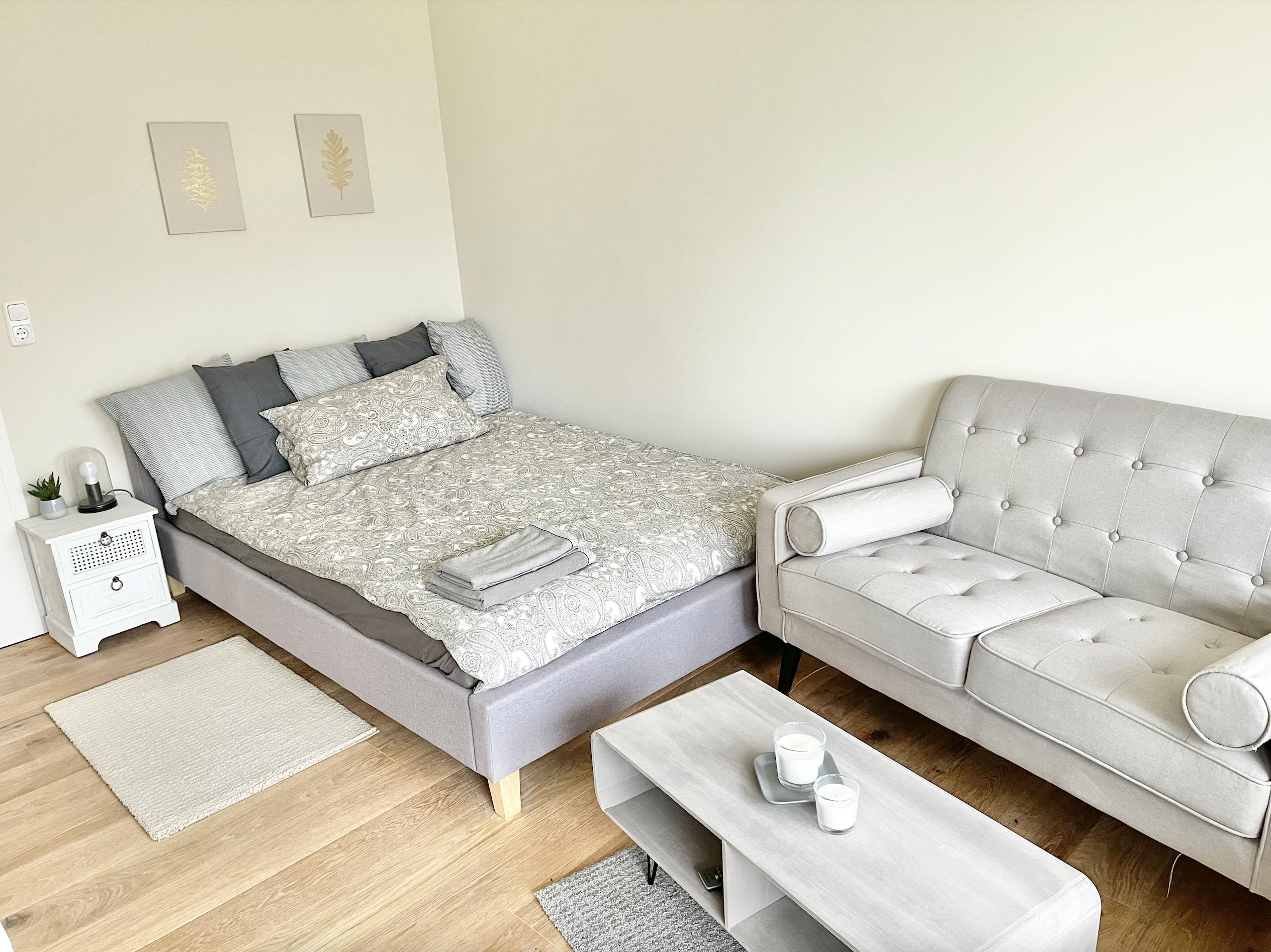 english version below: Zum 14.10.2022 können Sie in diese attraktive Wohnung einziehen, die in der ersten Etage liegt und durch eine moderne neuwertige Innenausstattung besticht. Zu dem Apartment zählt ein hübsches Zimmer mit Sofa und Schlafbereich, hier grenzt der Balkon mit direktem Gartenzugang an. Hier können Sie Ihre freie zeit gemütlich an der frischen Luft, im Grünen und in absoluter Ruhe geniessen. Ihnen steht außerdem eine Einbauküche zur Verfügung. Ausstattung: Einbauküche mit Mikrowelle Senseo Kaffeemaschine Esstisch mit 2 Stühlen geräumiger Kleiderschrank Bett (120x200) mit Nachttisch Sofa Kommode geräumiges Duschbad mit Fenster Lage Die Immobilie finden Sie in eienr sehr ruhigen Gegend in Friedrichsdorf. Für Mobilität ist dank der in der Nähe verkehrenden Buslinie n35 gesorgt. In Laufnähe gibt es ein paar Cafés, Restaurants, Bäckereien, Supermärkte und ein Einkaufszentrum. Auch einige Modegeschäfte, zwei Fitnessstudios, eine Grün- und Parkanlage, eine Bar und eine Buchhandlung erreichen Sie. Sonstiges Im Objekt gibt es WLAN und einen Waschkeller mit Münzwaschautomaten. ---------------------------------------------------------------------------------------------------------------- Bitte beachten Sie, dass HousingAnywhere eine Online-Buchungsplattform ist. Daher ist es nicht möglich, Kontaktdaten auszutauschen und Besichtigungen anzubieten. Wenn Sie diese Unterkunft reservieren möchten, senden Sie mir eine Buchungsanfrage oder eine Nachricht! ENGLISH: To 14.10.2022 you can move into this attractive apartment, which is located on the second floor and impresses with a modern interior as good as new. The apartment includes a nice room with sofa and sleeping area, here adjoins the balcony with direct access to the garden. Here you can enjoy your free time comfortably in the fresh air, in the greenery and in absolute peace. You also have a fitted kitchen at your disposal. Equipment: Fitted kitchen with microwave Senseo coffee machine Dining table with 2 chairs spacious closet bed (120x200) with bedside table sofa chest of drawers spacious shower room with window Location The property is located in a very quiet area of Friedrichsdorf. Mobility is ensured thanks to the nearby bus line n35. Within walking distance there are a few cafes, restaurants, bakeries, supermarkets and a shopping center. You can also reach some fashion stores, two gyms, a green and park area, a bar and a bookstore. Other There is wifi in the property and a laundry room with coin-operated washing machines. ----------------------------------------------------------------------------------------------------------- Please note that HousingAnywhere is an online booking platform. Therefore it is not possible to change contact data or do viewings prior to booking. If you want to reserve this place, send me a booking request or a message! ----------------------------------------------------------------------------------------------------------------...