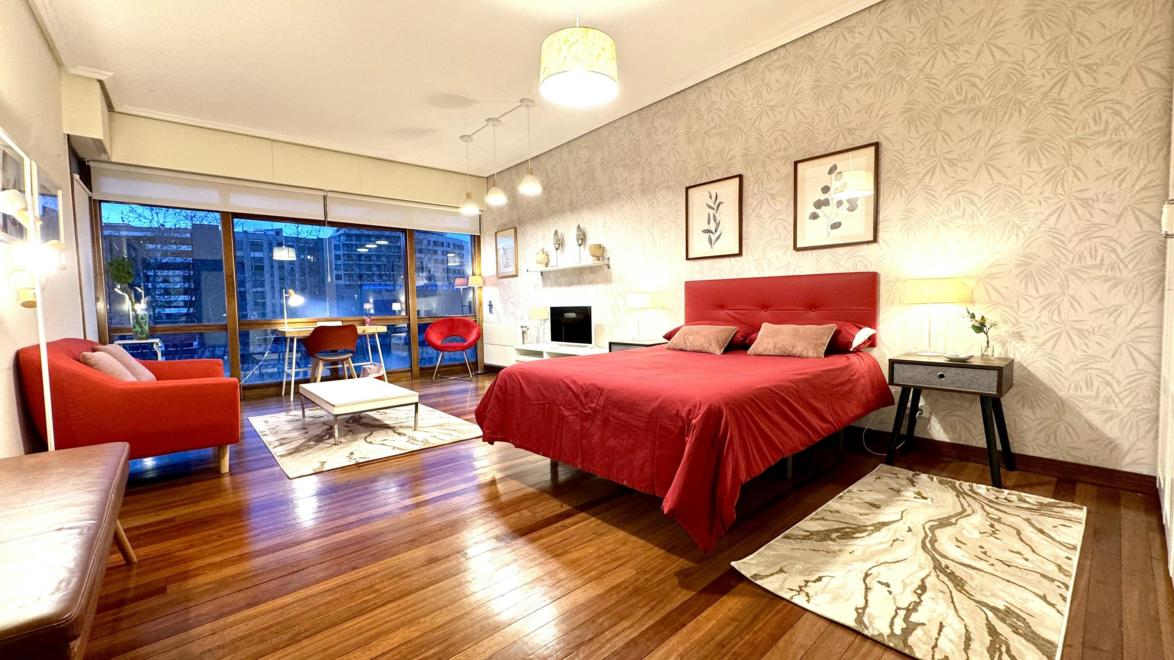Paseo Campo Volantín 33. Habitaciones amplias y muy confortables en paseo del Campo Volantín, una de las zonas más tranquilas y soleadas de Bilbao, frente al museo Guggenheim y paseo de Uribitarte A 1 min del puente Zubizuri parada de tranvía, 4 min. andando de la Universidad de Deusto y 5 min de paradas de metro. La zona está prevista de restaurantes cafeterías comercios de alimentación y necesidades básicas. Entonces ellas están incluidos los gastos de luz agua y calefacción central Internet además de un servicio de limpieza en un día por semana de las zonas comunes Se facilita dos juegos de fundas nórdicas sábanas relleno y dos de toallas de baño y lavabo Ambiente joven profesional y estudiantes....