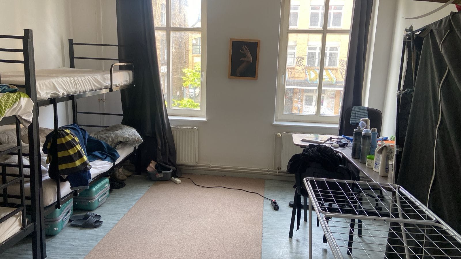Spacious shared bedroom! Please note that these pictures are just example pictures and the actual room can slightly differ. The fully renovated 5-bedroom apartment is located in the top location of Berlin-Schöneweide on the 1st floor. The room is part of a beautiful apartment (100 m2) and it shares common areas with 4 other rooms. The very bright apartment has high ceilings and fully equipped rooms, and it consists of 5 bedrooms, 1 bathroom, and a fully equipped kitchen with all appliances. Kitchen utensils, powerful Wi-Fi, and a washing machine all are included :) Out of the 5, two bedrooms are shared and the other 3 are Private. You have chosen a 4- person shared room. The property is part of the Schöneweide district, a multicultural residential neighborhood , and it provides all the necessary amenities to have an easy life. All shops, restaurants, parks, and public transport are within walking distance and the location is very close to Berlin. You just have to bring your own personal belongings and can move in with us. We're sure your flatmates are looking forward to you. Make your inquiry today. Students, trainees, and language- students all are welcome:) Please note: -The age preference is 20 to 45 years old. Please note, the majority of tenants in the house are students between the age of 20 to 30....