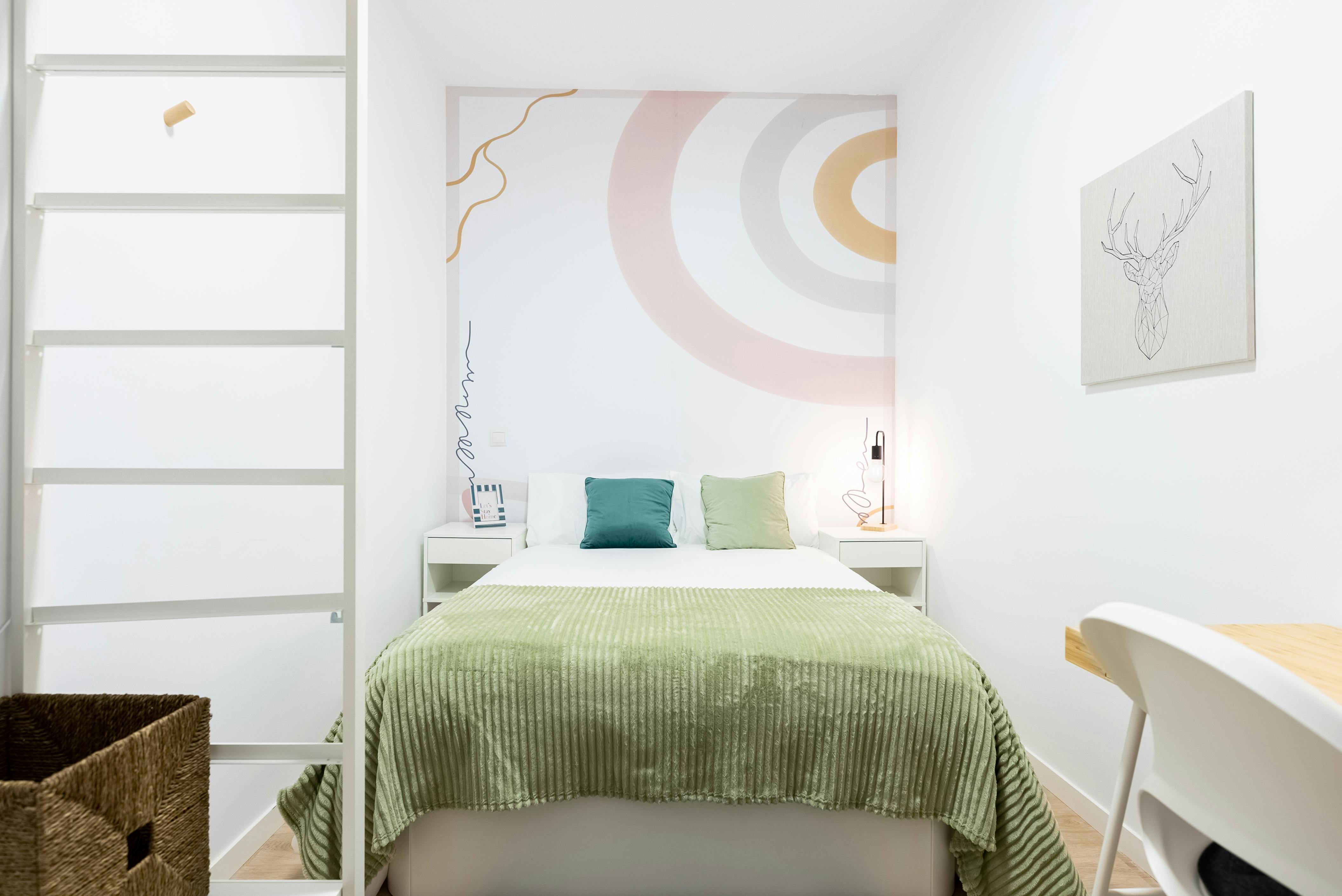 HABITACIÓN CON CAMA DE MATRIMONIO Y BAÑO PRIVADO La habitación cuenta con cama matrimonio, zona de escritorio, baño en-suite y armario. El apartamento cuenta con cocina completamente equipada, 3 baños compartidos por un máximo de 12 personas. Nuestro coliving está enfocado a estudiantes y jóvenes profesionales, generalmente entre 18 y 40 años, y ambiente internacional. Buscamos que disfrutes de Madrid y que tu estancia sea cómoda, por lo que nuestros asesores te ayudaran ante cualquier duda. Al hacer tu reserva queremos que disfrutes con nosotros, estés cómodo y cuentes con nuestro equipo y comunidad, por ello no solo te ofrecemos un alquiler, sino que alojándote con nosotros: - Formarás parte de nuestra comunidad, teniendo acceso a eventos y actividades semanales para que descubras Madrid y te sientas como en casa siendo uno más. - Limpieza semanal de las zonas comunes - Servicio de mantenimiento - Posibilidad de empadronamiento (City registration) para estancias a partir de 6 meses - Servicio Medico 24/7 por Quirón Salud - Atención al cliente 24/7 a través de nuestro departamento de Atención al coliver - Invitación a eventos y actividades especiales Condiciones: - Un mes de Fianza - Membership Club - Suministros incluidos en el precio como electricidad, agua, calefacción y internet de alta velocidad (hasta un máximo de 70€ ) - Consultar estancia mínima - De documentación únicamente solicitamos DNI o pasaporte Nuestro coliving está enfocado a estudiantes y jóvenes profesionales que quieren disfrutar de una estancia en Madrid. La ubicación es inmejorable en la zona del centro, donde se encuentran edificios de gran importancia cultural y de ocio, y en frente de la parada de metro Sol, línea 1, 2 y 3 de Metro, que conecta directamente con el resto de Madrid. Además, cuenta con numerosas paradas de autobuses con excelentes conexiones por toda la ciudad. Check in: Lunes - Domingo: 15:00 - 24:00 Check-out: Antes de las 11:00 📅 CONTRATO QUINCENAL En el mes de entrada o de salida: - Si te quedas 14 días o menos, pagarás la mitad del alquiler de ese mes. - Si te quedas más de 14 días, pagarás el alquiler del mes completo. (El importe a pagar de cada mes aparece calculado en el resumen de pagos) 💵 Payments before the check-in: Once the reservation is confirmed, you will be required to make the additional payments (security deposit, etc.) through our secure payment system before the move-in date...