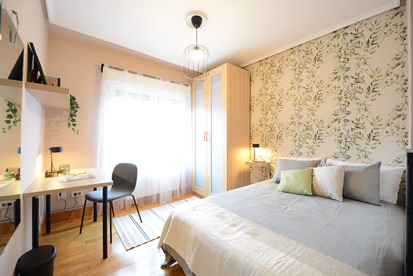 ZONA TXURDINAGA HABITACIÓN PARA USO INDIVIDUAL. Habitaciones en piso reformado, con mobiliario nuevo a estrenar. Exteriores y con mucha luz. Suelo madera y ventanas Climalit. Calefacción y agua caliente por caldera de gas individual. Zona de estudio con escritorio, silla, balda y flexo Equipadas con un amplio armario, cama doble de 1,35×1,90m y mesilla. Alfombra Ropa de cama: Protector de colchón, almohadas, plaid y cojines incluidos. Relleno nórdico, funda de relleno nórdico, toallas y sábanas no incluidas, se pueden comprar a la llegada. Alquilamos por meses naturales completos. Los gastos de suministros y limpieza de zonas comunes están incluidos en el precio. Por favor lee bien todos los detalles de los costes. CARACTERÍSTICAS – 80m2 | 3 habitaciones – H1: habitación de uso individual. – H2: habitación de uso individual o para pareja – H3: habitación de uso individual o para pareja con baño. – Reformado. ZONAS COMUNES – Cocina totalmente equipada (icluido lavavajillas) – Salón con gran sofá de cuero, TV, comedor y amplia terraza. – 2 baños completos. DESCRIPCIÓN DEL PISO Amplio, luminoso y muy cómodo. Un piso que te encantará por su cómodo y gran salón, por la moderna cocina muy bien equipada, por sus amplios armarios y sus prácticos baños. Reformado para estrenar, cuenta con 3 habitaciones (dos de ellas dobles), cocina, salón con comedor y terraza y dos baños completos. Suelo de madera y cerámica, ventanas de PVCy calefacción de gas. Es un cuarto piso con ascensor y todo exterior. Tiene una decoración con toques coloniales en marrones y verdes y con motivos tropicales que aportan un aire fresco y moderno. Está situado en Txurdínaga, un barrio residencial periférico muy bien comunicado que cuenta con amplias zonas verdes (Parque Europa) y deportivas (Polideportivo Municipal de Txurdinaga). No tiene zona de OTA, si tienes coche podrás aparcar sin preocuparte del horario. El metro más cercano queda a 5 minutos en Bolueta y se puede coger el Bus que te lleva a la Universidad de Leioa cruzando el Parque Europa en la parada de Santutxu A2321(Santutxu/UPV). Además hay varias líneas de autobuses BILBOBÚS que recorren todo Bilbao, en este enlace podrás verlas. Tienes varios supermercados en la misma calle y una panaderia-pastelería a la puerta de casa...