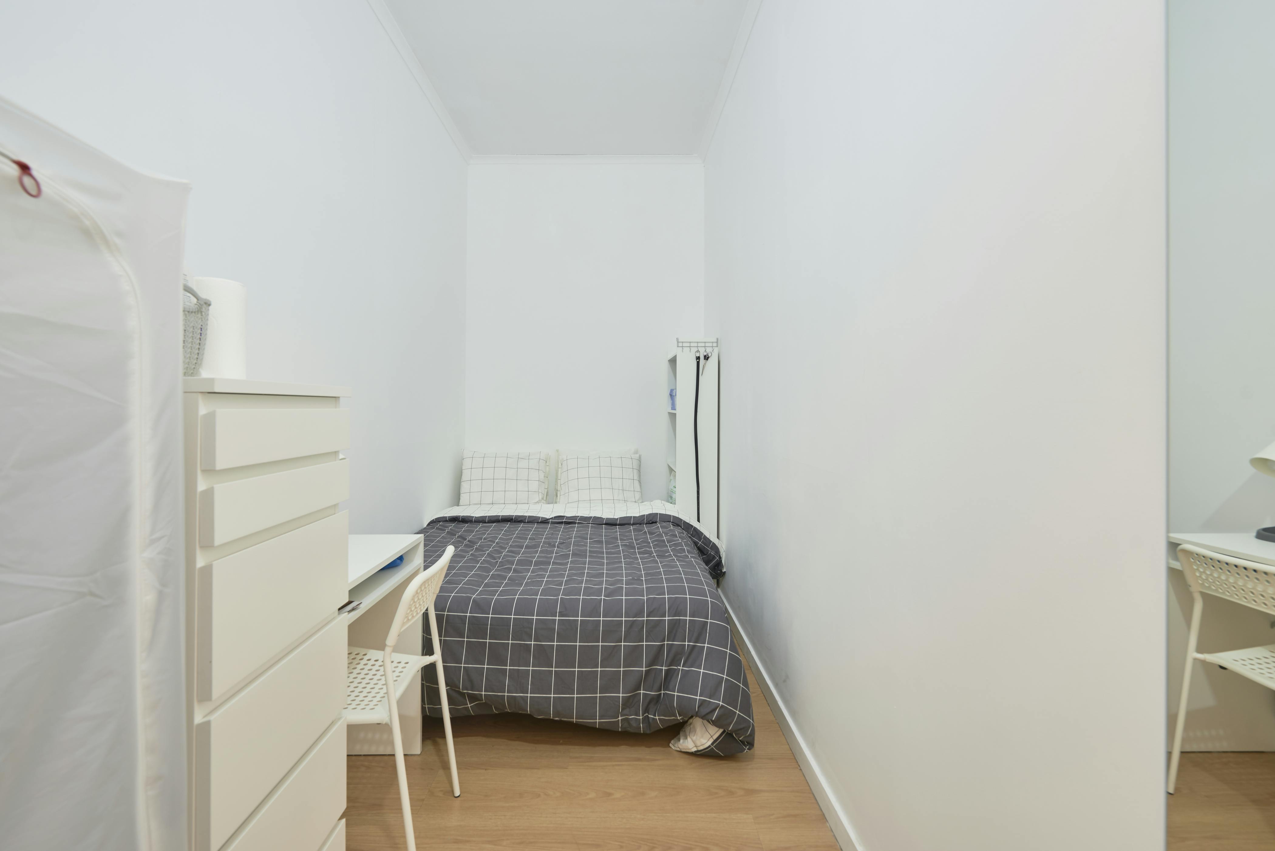 An amazing chance to live in the most centric location in town! RESIDENCE This a residence in the center of Lisbon with 21 rooms, 8 showers, and 8 toilets, aimed at students and young professionals. Located between Campo Pequeno and Entre Campos. BEDROOMS The rooms are furnished with a bed and set of sheets, duvet and pillow with cover, bedside table with lamp, wardrobe, chest of drawers, desk with bench and waste bin. In-room TV was available on request. COMMON AREAS The common area has a dining table with benches, a TV, reading material, and access to the clothesline. Unlimited wireless Internet throughout the house, cable TV in all rooms and common areas, and free landline telephone in the lobby. The house is cleaned up to twice a week by the cleaning staff. KITCHEN The kitchen has 4 refrigerators with a freezer, stove, oven, and microwave, and is fully equipped with crockery, glasses, cutlery, pots, pans, and a set of knives. LOCATION This location allows the house to benefit from a varied network of local commerce, using Lidl supermarkets, mini-markets, cafes, restaurants, butchers, pharmacies, and banks. TRANSPORT It is possible to reach the metro stations of Campo Pequeno (Yellow Line) or Entre Campos (Yellow Line and trains ) in a few minutes. The house is centrally located, allowing it to be served with a wide range of public transport with connections to all parts of the city, including the airport: metro, bus, and taxis! Please, read carefully the whole description before sending a booking request: ✅ YOUR MONTHLY RENT INCLUDES: - Utilities (Up to €40/month of water, electricity, gas). - WiFi. - Cable TV. - Weekly cleaning of common areas of the house. - Maintenance service. - Telephone service for emergencies. 💵 REQUIREMENTS: + Security Deposit (equivalent to the amount of one month's rent and paid during the check in). + Admin fee (Paid per person once during the check in). + Extra cost of 50€/month in case the accommodation is intended for 2 persons. 📅 MONTHLY CONTRACT: Payment for whole months, regardless of your move-in and move-out date. 🕛 CHECK-IN TIME: - Monday to Friday - from 8 am until 6 pm. 🌆 OPTIONAL EXTRA SERVICES (under request) - Check-in outside working hours or during weekends - 34.99 € (Working hours: Monday to Friday - from 8 am until 6 pm). - Fridge inside the room (minimum stays of 6 months) - 14.99 € p/month. - Special cleaning of the room 49.99 € (1 X per week). 🔊 RENTAL CONDITIONS: - There is a rental contract that must be signed and respected by the tenant(s). - For the rental contract it is necessary a copy of an ID Document and fiscal number. - During the booking process it is mandatory to be indicated who are the persons that are going to rent the accommodation and do the check-in. - The security deposit must be paid during the check-in and it will be returned if the accommodation is left in the same condition as received. The security deposit can't be part of the last month's rent. - The rent must be paid until the last day of the previous month. - Every tenant is responsible for keeping the accommodation clean and in good conditions. - Visitor(s) policy: Yes (Under request and approval). - Parties are not allowed. - Loud noises are not allowed after 22:00. - Smoking inside the property is not allowed. - Pets or animals are not allowed. We carry out contracts, issue receipts within the scope of the law and assist with obtaining the Residence Visa!...
