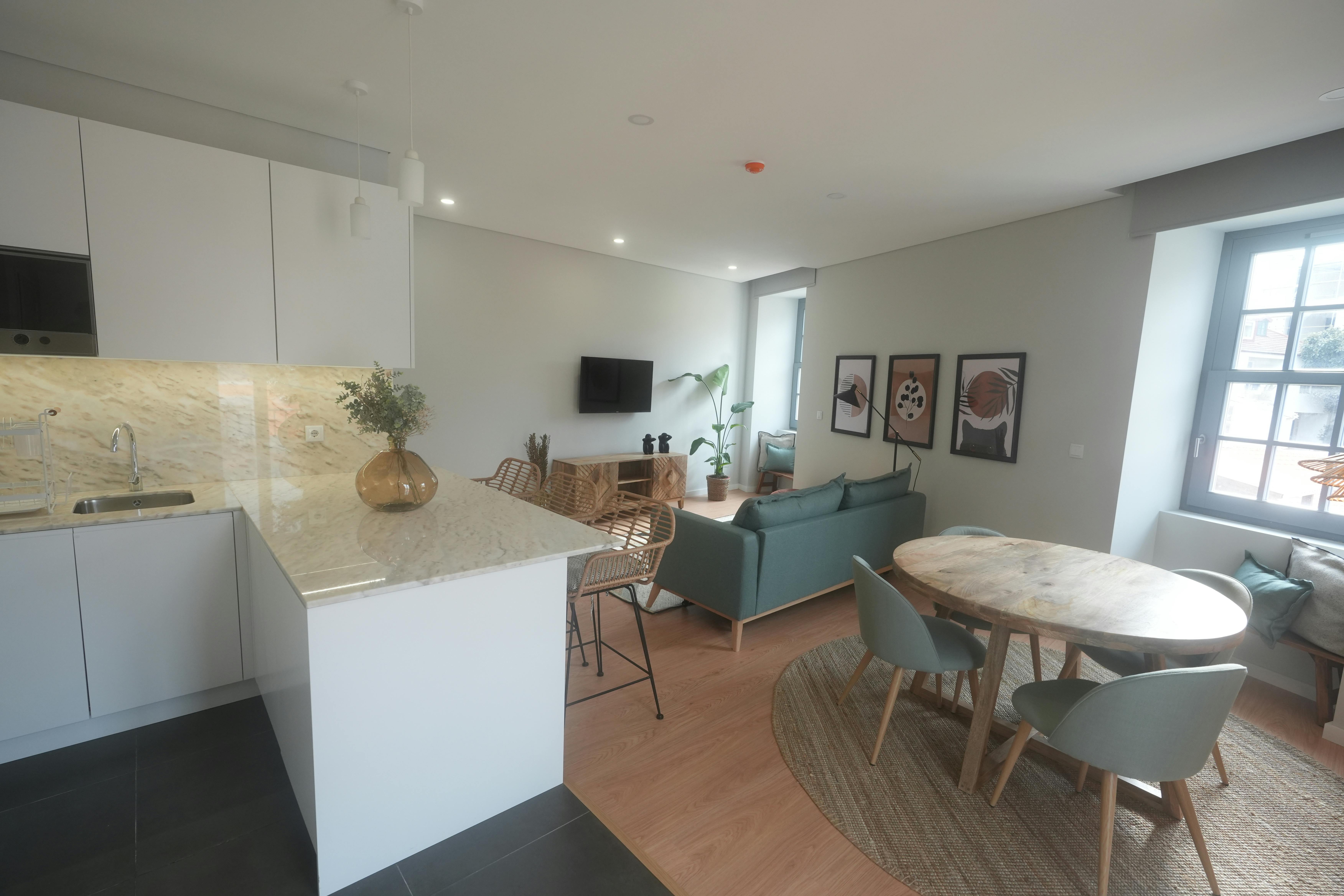 Discover the perfect home in the heart of Oporto, where modern comfort meets vibrant city life. This brand-new house is designed with stylish decor and equipped with state-of-the-art amenities, offering a truly comfortable and convenient living experience. Ready to move in, the house comes fully equipped with bed linens, towels, and everything else you’ll need for a seamless stay. One of the standout features is the open-concept kitchen, blending effortlessly with the living room to create a spacious, stylish, and social area — the perfect spot to cook, relax, and entertain. For year-round comfort, air conditioning is available in both bedrooms and the living room. The property also includes private parking for one car right in front of the house, within the secure complex. Additionally, enjoy access to the shared pool for those sunny days. We offer a distinct, hassle-free service, ideal for those who want a ready-to-live-in space without the stress — just bring your suitcase! All essential services are already available in the apartment, including electricity, water, and high-speed internet, ensuring maximum comfort and convenience from the moment you move in. Please note that a weekly cleaning service is mandatory throughout the stay. This is the best way to guarantee that the apartment remains in the same perfect condition in which it was delivered upon arrival, maintaining comfort and quality for all guests. Prices shown are indicative and may vary slightly depending on the applicable taxes and services (VAT at the legal rate). Nearby Attractions: Torre dos Clérigos – 5-minute walk Piolho / City Center – 3-minute walk Rua de Cedofeita – 2-minute walk 360-degree view: https://my.matterport.com/show/?m=uzmKp7iSeX...