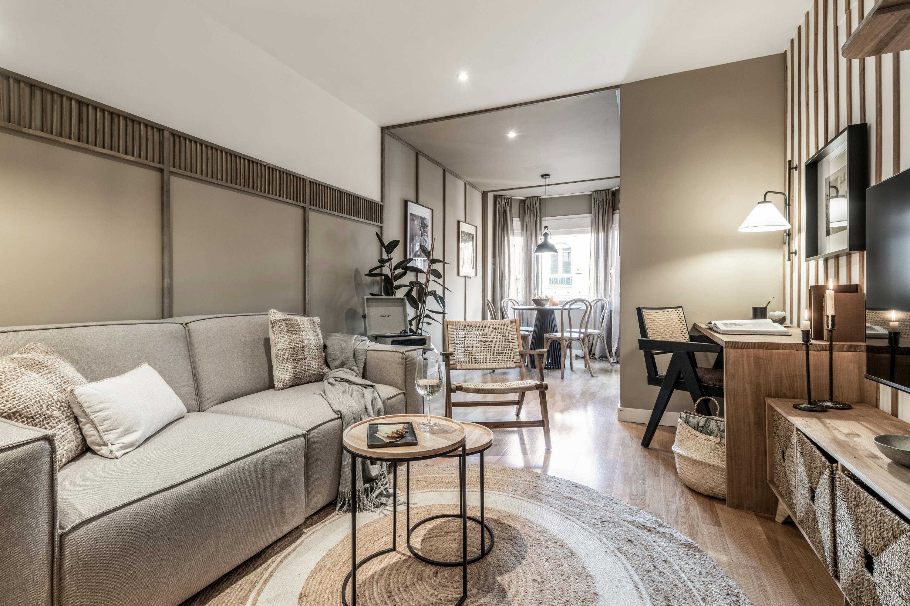 Puebla is in Salamanca, Madrid’s upmarket neighborhood, most famous for classy bars and designer boutiques. The apartment is also right on the doorstep of the spectacular Retiro- Madrid’s best known park. After a day out exploring this wonderful part of the Spanish capital, come home to the ideal apartment. The open living and dining room is stunning, with beautiful decor and furniture to represent our grassland theme. The bay windows ensure the dining area is bathed in natural light. The space also features a dedicated workstation, making it just as pleasant a place to work, as relax in. The stylish bedroom also benefits from natural light, and is fully furnished. Including a soft, double bed, and built-in wardrobes. Both bathroom and kitchen are modern, and fully equipped with all fittings and appliances. Puebla’s most spectacular feature though, is surely its communal pool and garden. The cool water and lush greenery being the perfect accompaniment to the hot, Spanish summers. A marvelous oasis in the heart of Madrid. Fully furnished, this home comes with everything you need, including bedding and linens. *Please note that the building amenities such as the pool and/or gym may have specific hours of operation and might not be available year-round. *We welcome pets, fees are subject to apply. Guests will be informed of any additional charges in the final contract. *We cannot be held liable for any noises (construction, or street noise) done outside the apartment. We also cannot be liable for any rooms without air conditioning (all the rooms with air conditioner will be explicitly explained in our description). We will not accept any reservation cancellations or refund requests related to these two issues. *Our in-house design team expertly selects all apartment furniture and decor to ensure the highest level of quality and comfort. As part of consistent home upkeep, design improvements, and photo staging, there may be minor differences in furnishings seen in the photos and what you find in the apartment. Inquire with a sales agent for any questions or doubts...