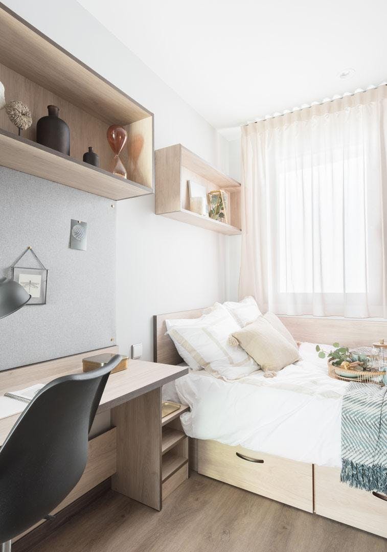 🎓 This accommodation is suitable for students. 💲❗ After the reservation is completed, you will be required to pay the deposit and other fees through our secure payment system. ✨ PRIVATE ROOM IN AN APARTMENT Spacious room ideal for resting, studying, cooking, and enjoying your privacy. The rooms are fully equipped and have their own bathroom, air conditioning, heating, TV, and high-speed wifi to guarantee your comfort at all times. 🛏 CHARACTERISTICS OF THE ROOM: ✔Single room with a shared lounge ✔120cm bed ✔Study area with a desk with a chair ✔Individual private fridge inside each bedroom ✔Adjustable Smart TV, which can be used as an additional work monitor ✔High-speed Wi-Fi ✔Shared lounge with kitchen (oven, induction hob, microwave, and sink); Smart TV; beanbags, and two private bathrooms 🏦 THE RESIDENCE Residences are designed with care down to the last detail with modern common areas, where you can study, work and share good times with your colleagues. Located in the residential neighborhood of El Porvenir, our residence is located on Avenida de Ramón Carande. A few minutes from the Pirotecnia campus and the Ramón & Cajal campus of the University of Seville and the San Bernardo interchange, 3 tram stops from the Pablo de Olavide University, also very close to the Reina Mercedes campus of the University of Seville, and one block from EUSA, our residence is very close to the main higher education centers in Seville. Our residence is surrounded by restaurants, bars, hospitals, and parks. In addition to this, it is a 20-minute walk from the Sports Activities Service of the University of Seville (SADUS), María Luisa Park, and the Viapol Shopping Center. 📜 SERVICES INCLUDED IN THE RENT: ✔Dining room ✔Pool ✔Rooftop ✔Gym ✔Chill out garden ✔Audiovisual area ✔Private areas ✔Library ✔Workspaces & coworking ✔Gaming zone ✔Self-service laundrette And all this with high-speed Wi-Fi throughout the residence, cleaning of rooms, and change of linen & towels. With studios designed in detail for a student residence, it thus offers a much more comfortable and personalized experience for you than, for example, sharing a rental apartment in Seville. 🎀 OTHER SERVICES AVAILABLE (extra cost): ✔ Self-service Reprographics ✔ Self-service personal laundry (All paid via your app) ✔ Parking ✔ Full Board ✔ Cleaning 🔐 SECURITY DEPOSIT -750 euros Be aware that HousingAnywhere is an online booking platform. Therefore exchanging CONTACT DETAILS and offering VIEWINGS is NOT POSSIBLE. The platform keeps your payment safe until 48 hours after your move-in date. In case the accommodation is not as advertised, you will be entitled to get a refund...