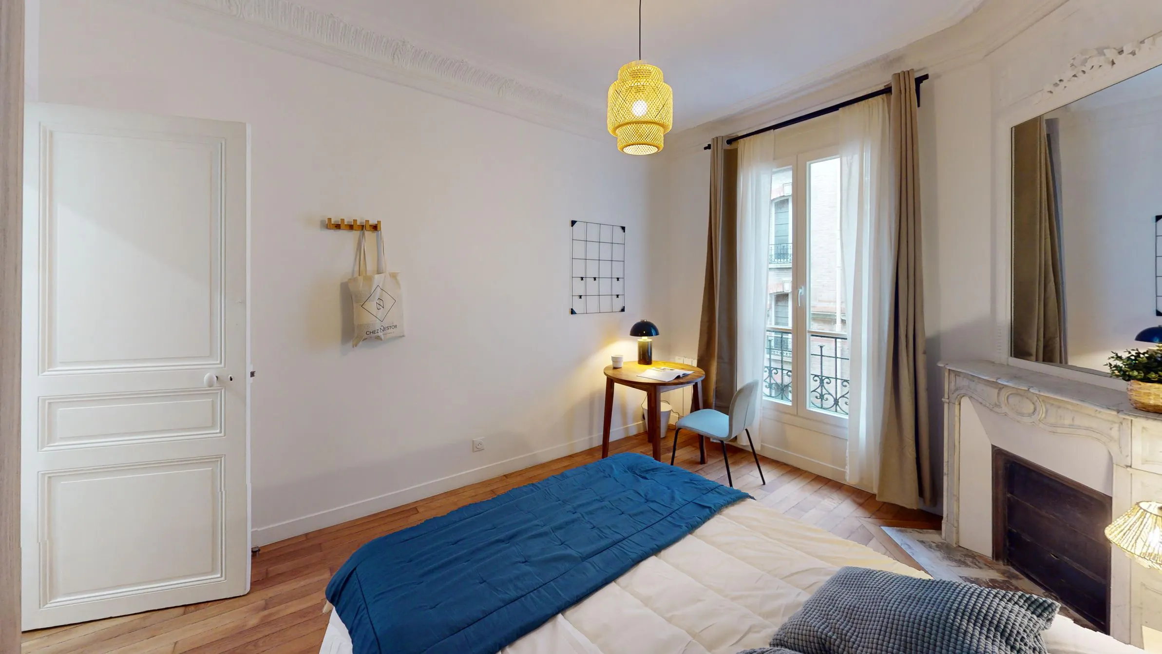 Furnished flat share ! All our flats are located in the city centre and close to all amenities and public transport (Metro, Tramway and Bus). This lovely private bedroom in a fully equipped, furnished and all-inclusive flatshare in Paris is a mix of comfort and design. It has got household furnishings, including a bed with pillows and duvet What is missing is your things to feel at home! The room can be locked if you need intimacy. All our rooms are fully furnished (bed, desk, wardrobe, duvet, pillows...). The flatshare can be found in the Quinze-Vingt neighborhood, in the heart of Paris. Plenty of shops, public transports, restaurants are accessible close by. The apartment is on floor 2 without lift. It is entirely equipped and is composed of a large kitchen with refrigerator, microwave, pans, crockery, kitchen ustensils, kettle... The accommodation also contains an ironing board, a washing machine, a clothes rack, an iron. Additionally, you will find cleaning items in the accommodation: bagless hoover, dustpan and brush, broom, mop and bucket... Every furnished flatshare includes all expenses: housing insurance, water, electricity, unlimited wi-fi, condominium fees, household waste tax. All our flats are fully equipped (washing machine, dishes, decoration...) by our teams, who also take care of the technical and material maintenance. Minimum stay : 1 mois Apartment eligible for CAF up to 258€ / month. The CAF for Caisse d'allocations familiales is a free public service eligible for all, including foreigners and can help you financially to pay part of your housing according to your situation whether you are French or foreign. To find out the potential amount of your assistance, go to the CAF website and complete the online APL (housing assistance) estimate. Service fee : from 790€ The service fee covers the writing of the lease but also the assistance throughout your stay. The service fee covers the repair and maintenance of the equipment as well as access to our ultra-reactive support in case of need for intervention in your accommodation. Deposit : 1100...