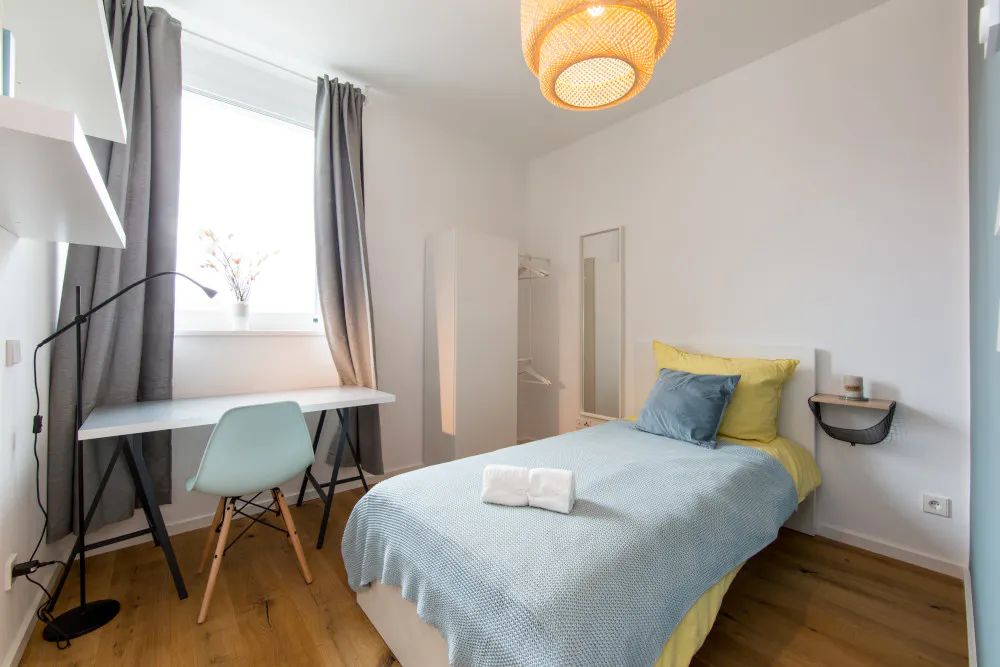 Welcome to our beautiful newly renovated apartments, where you bring the spirit and we take care of the rest! Our large number of co-living apartments all consist of spacious and bright rooms in a modern design. The best part is, everything is already fully furnished. In other words, you can literally grab your suitcase and move in tomorrow! Additionally, not only all of the rooms are already equipped with the essentials like electricity, water and internet, but we also offer numerous other facilities that are included in the price. Whether you would like to do sports in our fitness rooms, study in the coworking areas or socialise during organised workshops and events; we have it all! We are located in ‘Wedding’, which has become one of the trendiest areas in Berlin, throughout recent years. Today, Leopoldplatz is surrounded by residential areas, shops, and dining establishments. Wedding is characterized by its diverse mix of cultures and social backgrounds, and the Leopoldplatz district reflects this diversity, creating a vibrant atmosphere. You'll find numerous stores, cafes, restaurants, and markets offering a variety of culinary specialties and products. The district is also home to some green oases, such as Rehberge Park and Schiller Park, providing opportunities for relaxation and recreation. Leopoldplatz is well-served by public transportation. Due to its central location, all other exciting parts of Berlin can easily be reached by public transportation, with U6 and U9 lines arriving at the Leopoldplatz (2-mintue walk) on a regular basis. Overall, the Leopoldplatz district in Wedding offers a diverse and lively experience with an interesting history, cultural diversity, and plenty of options for shopping, dining, and relaxation. With open-minded and international people this place will not only provide you with an amazing new home, but you will also be part of our international and open-minded community, that you do not want to miss out on. Services / facilities that are INCLUDED in the price: - heating, electricity, water - high speed internet - fitness room - community area - working spaces - gaming area - security (camera surveillance) - outdoor areas that can be used as sports facilities - bicycle parking spaces - community manager - great location - *laundry room (including washing machine & dryer) *Please note that although a common laundry room is included in the price, the costs per washing cycle / program are paid individually (2,80€ washing machine & 2,50€ dryer) and are therefore not included in the overall price. Additional services / facilities that are NOT INCLUDED in the price: - parking space (can be booked on request) What exactly does “fully equipped” mean? Being able to move into a new place the next day does not happen very often, yet we make it possible! Therefore, we have not only taken care of all the necessary amenities, but these are also included in the price and do not involve any additional charges. To give you an overview of your new home, we have listed all of the integrated facilities below: The apartment: • equipped kitchen • oven • *balcony / terrace The bedroom: • wardrobe • desk • chair • mirror • lamp • bed (90 cm) • mattress • blanket • pillow • curtains • floor lamp • shelf • drawer • heating unit *Please note that not all of the rooms have a balcony or terrace. Furthermore, those that do are sometimes shared and therefore more than one room may have access to the same balcony. The exact details of each individual room within the apartment can be seen on the according floorplan, which is included in the pictures. REQUIRED documents: - Proof of income (last 3 months) or work contract - Proof of enrolment (students) - Guarantor (only if you do not have proof of income) - Copy of guarantor's ID (only if you do not have proof of income) - Copy of guarantor's work contract (only if you do not have proof of income) *the landlord only accepts tenants under the age of 40* Check-in /out: - Check-in hours: Monday - Friday from 10:00 - 16:00 - The key transfer will take place at Village M (you will receive the address once your booking is confirmed) Please be aware once the booking is done on HousingAnywhere we will provide you with the contract. In order for you to get your keys, the deposit and our one-time service fee of 199€ must be transferred to our bank account. IMPORTANT!!! Please take into account that these are example pictures of the second floor. Although all rooms are exactly the same, the color of the furniture may differ. Additionally, the decoration is solely included for inspirational purposes and will not be present in your room either...