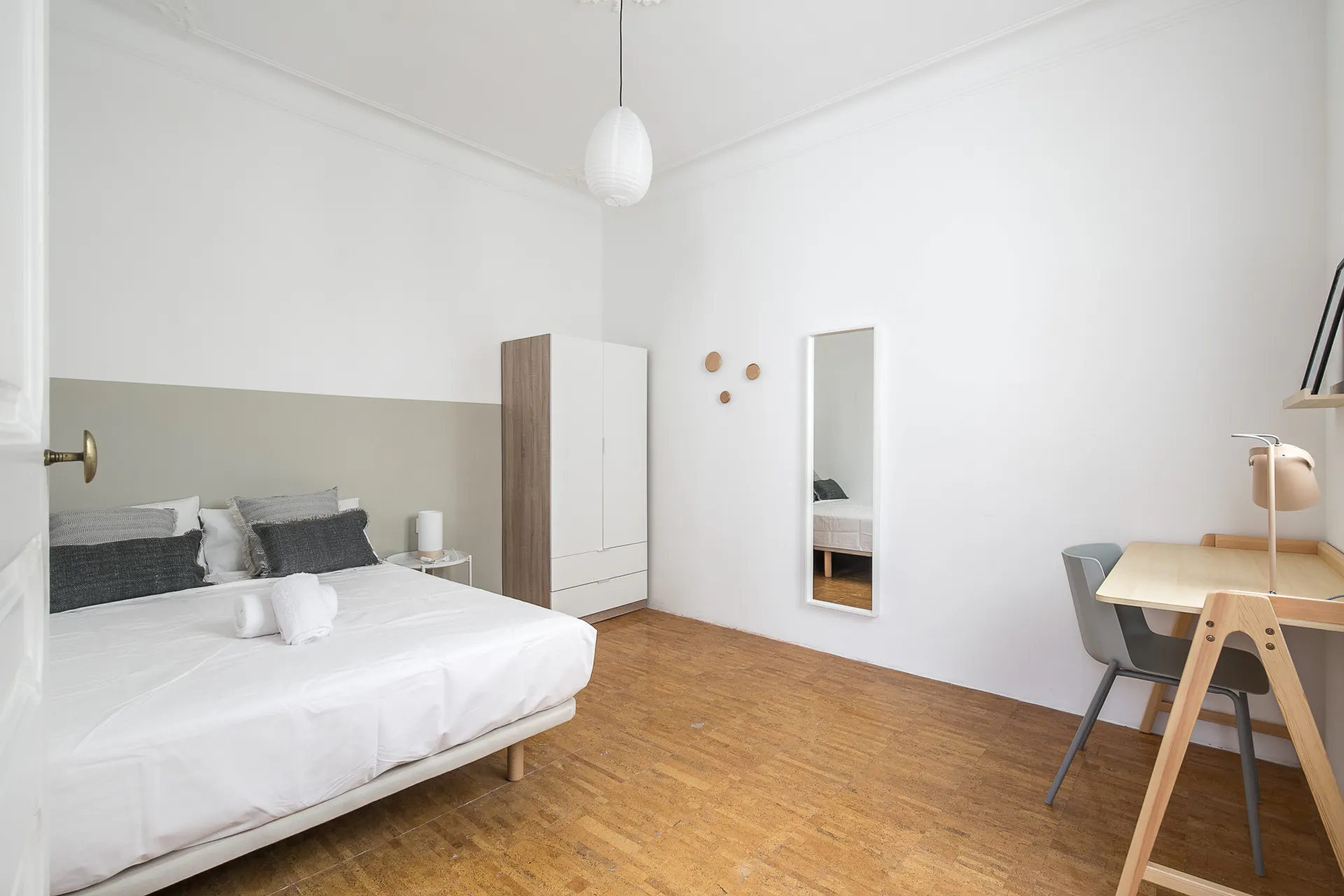 📌Comfort Plus Room 3 📌Gran de Gràcia Our private rooms are designed for young professionals with all expenses included. Your contract includes housekeeping, Wifi, furniture, equipped kitchen, a washer, drying machine, iron, dishwasher, and more. All our apartments are fully equipped! You only have to worry about bringing your suitcase with your belongings, the rest is up to us. All electricity, water, gas, cleaning, or maintenance expenses are included in the price, with no surprises. The apartment has 6 bedrooms, 1 kitchen, 2 shared bathrooms and a living room. Being part of our community is not only about living better, it is also about connecting, sharing, or working in a new city with people from all over the world. Gracia is the perfect neighborhood to stay in Barcelona! Come and experience the local life! Most of its quiet and narrow streets and leafy squares with no traffic noise are only minutes away from wonderful options of bakeries, bars, restaurants, and the market. Well-connected to the rest of the city. You can take the metro (Fontana, Lesseps, or Diagonal stops), but walking is also a nice option–the Gothic Quarter is a 30-minute walk down the grand Passeig de Gracia, and the beach at Barceloneta is 50 minutes away with lots to see along the way. Please be aware that HousingAnywhere is an online booking platform. Therefore exchanging contact details and offering viewings is not possible. If you would like to reserve this accommodation, send me a booking request or a message and please mention your age and occupation. I look forward to meeting you...