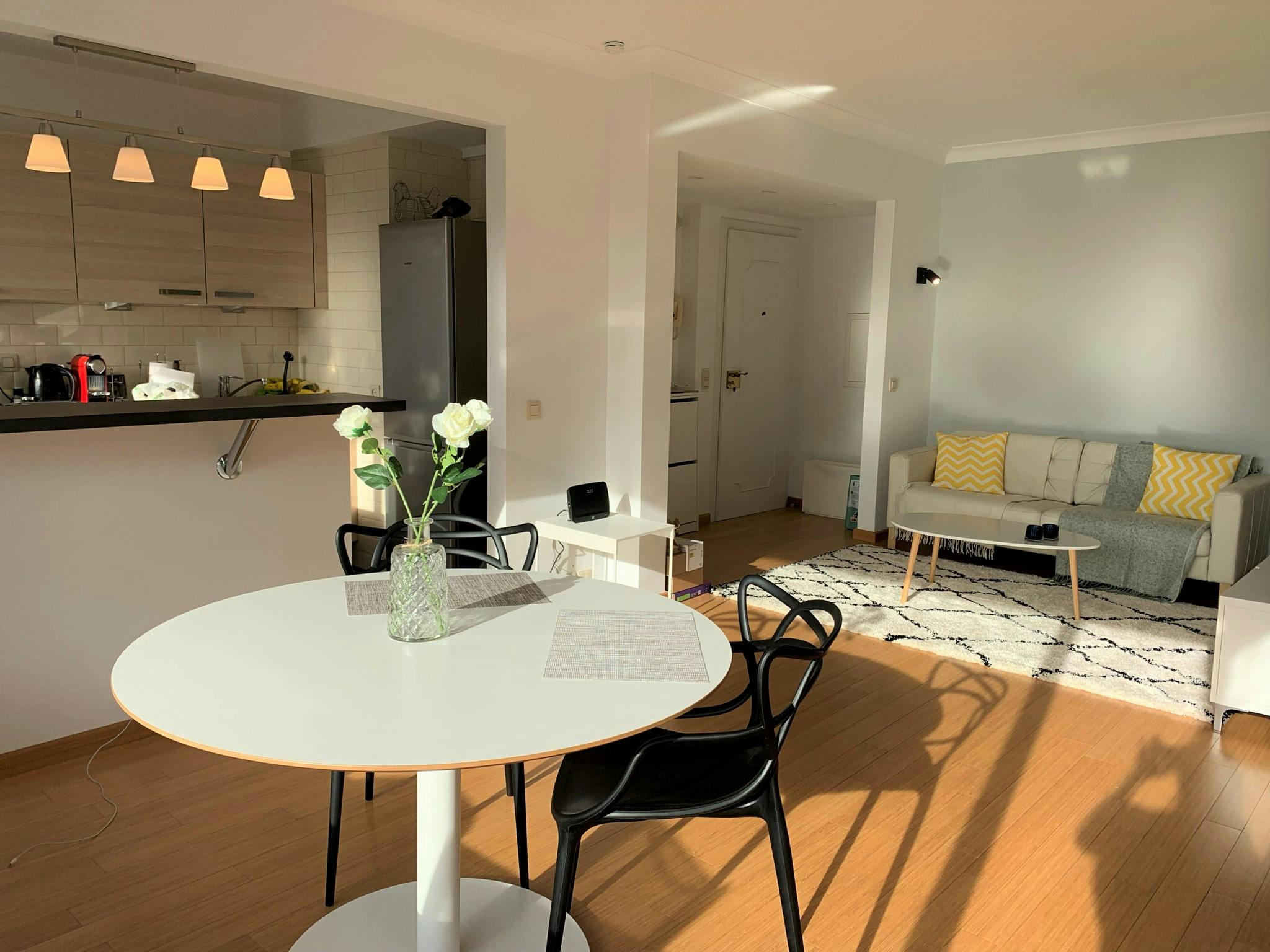 SUPERBE and BRIGHT apartment fully furnished in a modern style, next to metro station Demey, close to public transport and all other amenities. Very Bright, it consists on a living room with a large bay window with view on the garden, American super-equipped kitchen a bedroom, a bathroom and a beautiful balcony/terrace and a basement. Free parking is possible. Super equipped Kitchen : brand new Dishwasher, big fridge+freezer, electric oven, microwave, Nespresso machine, kettle, washing machine. Fully furnished, ideal for EU commission expats . You only need to bring your luggage in. No pets are allowed Provision of charges: 150€/month for hitting, cold+hot water, elevator, common area cleaning & maintenance of the outbuildings. Available on 01 April 2023...