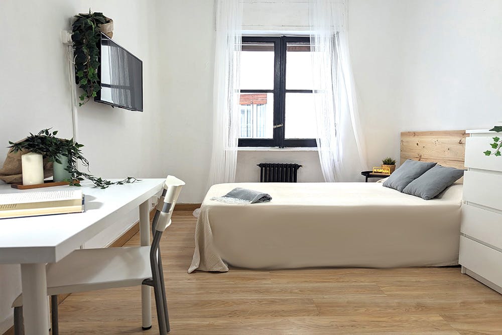 ❤Fantastic room with a window in Plaza de Manuel Becerra❤ The bedroom features a double bed, night light, bedside table, desk and chair, chest of drawers, cupboard, mirror, and door with a key. The popular Plaza de Manuel Becerra is located in the Barrio de Salamanca. Acclimated by its numerous terraces and surrounded by two wonderful parks, the Eva Perón Park, and the wonderful unknown Fuente del Berro Park. Place of reference for bullfighting lovers for being close to the international Plaza de Toros de las Ventas surrounded by its taurine-flavored taverns. Nearby metros: -Manuel Becerra station: line 2 red, 6 grey. -Sales Station: line 6 gray, line 5 green. 📜Bills Included up to 150 per apartment in electricity and gas! Please be aware that HousingAnywhere is an online booking platform. Therefore exchanging contact details and offering viewings is not possible. If you would like to reserve this accommodation, send me a booking request or a message and please mention your age and occupation. I look forward to meeting you...