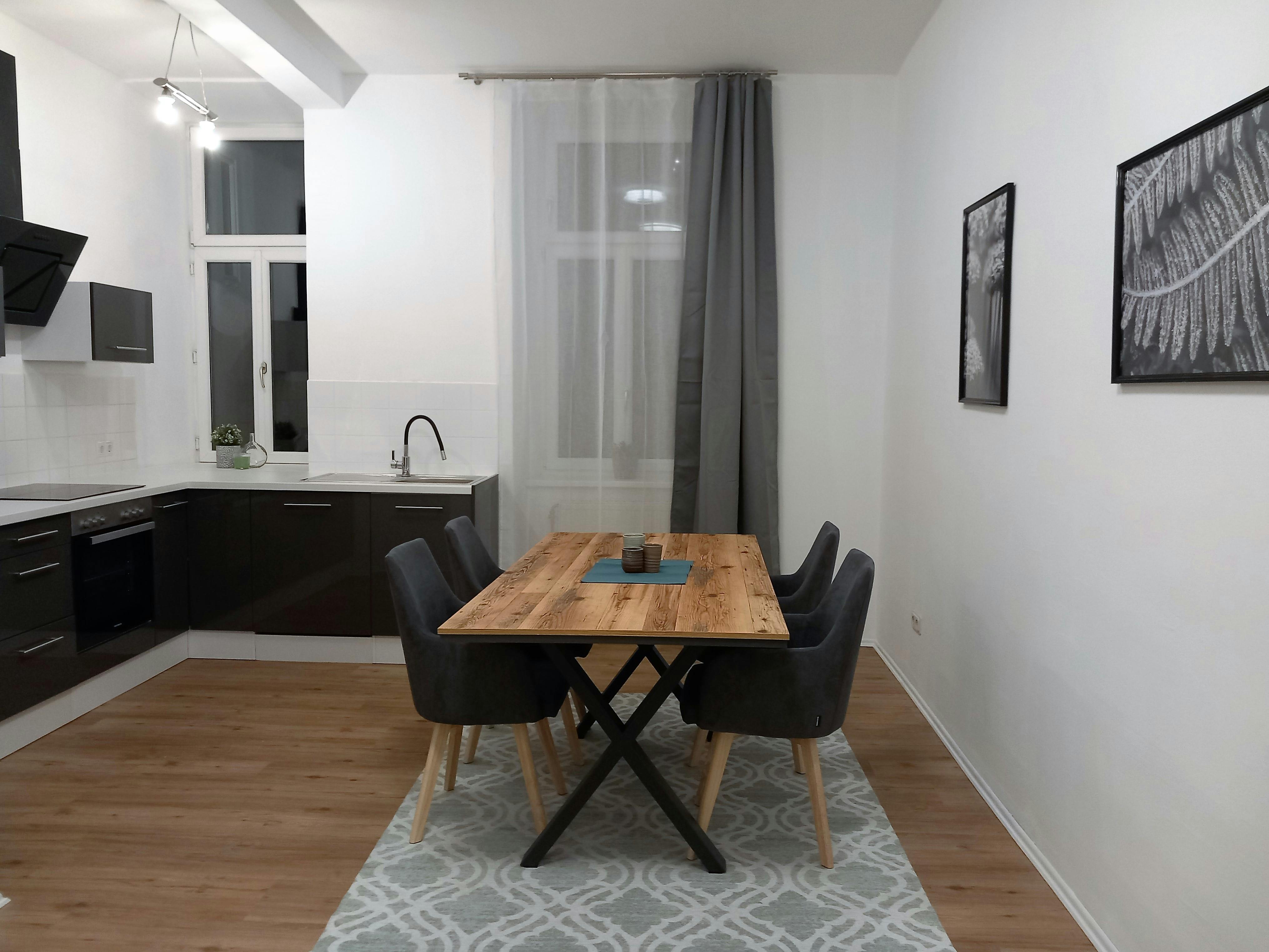This apartment is located in the center of Vienna near the Belvedere Palace. From the entrance area you can reach each room seperately. The 2 big rooms are bright . Each room have very comfortable double Boxspring bed, a desk, chiller sofa and a wardrobe. The couch is extendable, here another 2 people per room can temporarily sleep The kitchen has an electric cooking oven, dish washer, a fridge, a freezer, kitchen standard equipment . The dinningroom have a table with 4 chairs- so you have enough space for your guests. The bathroom is with a shower, bathtub, double hand basin and washing machine The toilet is an extra room. And you have a lots of space for your things in a littel seperat storage room and on the floor ther are big wardrobe....
