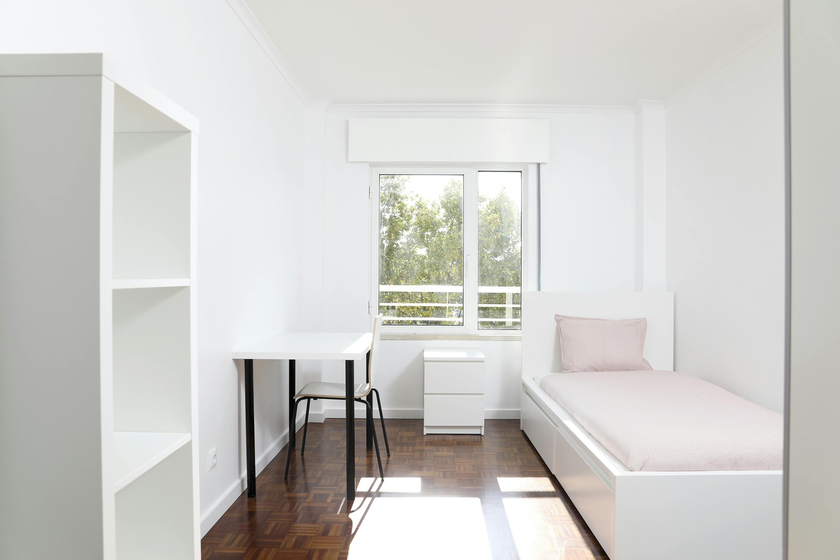 Single Room in refurbished apartment in Colombo Located 5 minutes walk from Centro Comercial Colombo, Hospital da Luz, Escola Superior de Comunicação, Escola Superior de Música, Universidade Europeia, IPAM. Also close to gyms, public garden, supermarkets, theatre, restaurants, etc. Plenty of public transportation at the door, via bus or subway (Colégio Militar station, blue line) The house has 4 bedrooms, 2 complete bathrooms, large living room and kitchen. The kitchen has everything necessary to cook and do laundry. Each person has assigned cabinets and drawers in the kitchen and in the fridge. All expenses included. No smokers. No couples...