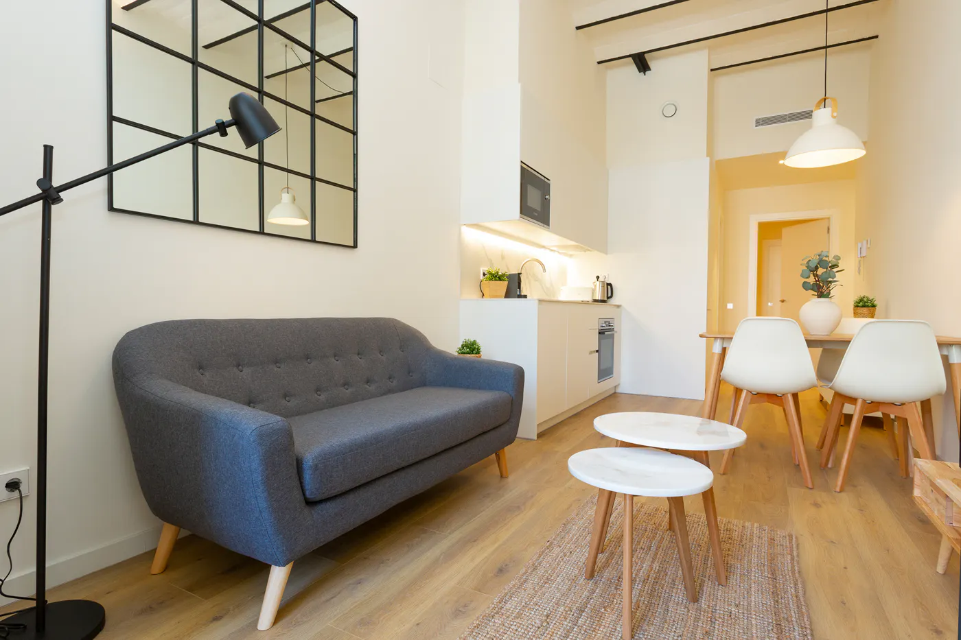 *Monthly rental apartment (from 32 days to 11 months)* It is a recently renovated apartment of 47 m2 perfectly distributed. Upon entering you will find a spacious and modern living room decorated with style. The integrated kitchen is fully equipped, with all the appliances and utensils you need for the day to day, such as: ceramic hob, oven, fridge, microwave, dishwasher, washer / dryer. Next to the living room, there is a gallery that you could use as a study area. The sleeping area consists of a bedroom, en suite and with double bed, has a closet so you can store what you need. The bathroom is complete with shower. The apartment has air conditioning, heating and wifi. Its location is perfect, in the sought after neighborhood of Eixample, as it is very central, quiet and residential. The apartment is located in the beautiful Paseo de Sant Joan, 3 minutes walk from the station "Arco del Triunfo" (L1); 6 minutes from Plaza Tetuan (L2); and 5 minutes from the North Station, which is one of the 3 most important bus stations in Barcelona, and from where you can access national and international connections. It is an area full of green spaces, the most important being the Parque de la Ciudadela. In the surroundings you will find all kinds of stores, bars, pharmacies and restaurants, as well as various tourist attractions. SERVICES INCLUDED: - Check in and Check out in the apartment - WIFI included in all our apartments - Maintenance included (For damage due to normal use) - Fully equipped and furnished apartments - Multilingual manager assigned during the entire stay TERMS: - Deposit for stays shorter than 3 months: 1 month's rent - Deposit for stays longer than 3 months: 2 month's rent - Maximum Stay: 11 months - Registration Possible only for stays longer than 6 months - The utilities of Gas, Water and Electricity are not included in the renting price LOCAL TAXES (I.T.P.): 0.5% of the total reservation (Monthly cost calculated as "other" in the Rent summary. The total amount will be collected before the check-in). Be aware that HousingAnywhere is an online booking platform. Therefore exchanging CONTACT DETAILS and offering VIEWINGS is NOT POSSIBLE. The platform keeps your payment safe until 48 hours after your move-in date. In case the accommodation is not as advertised, you will be entitled to get a refund. “BOOKING PROCESS: After the reservation is confirmed, you will be required to pay the remaining payments directly to the advertiser before the handover of the keys...