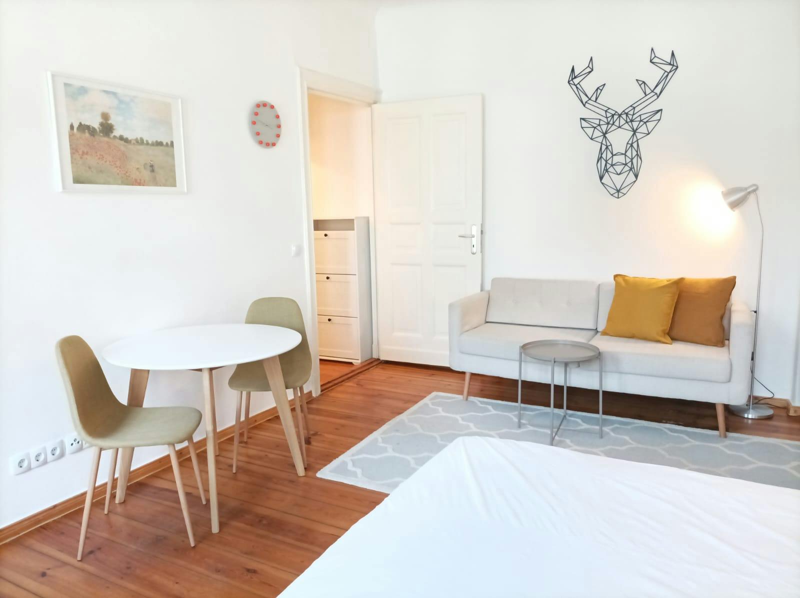 1 Room • 30 sqm • 4th Floor • Wedding • Triftstrasse Minimum stay: 6 months • Maximum stay: 12 months • Anmeldung is provided Suitable for: Single / Couple / 1 - 2 People Room Double bed 140X200 2 night tables 2 reading lamps Wardrobe Sofa Coffee table Standing lamp Carpet Dining table Chairs Curtains Blackout curtains Book shelf Kitchen Fridge Oven Electric stove Washing machine Bathroom Shower 2 Cabinets Towel rack Mirror Hall Hangers Shoe rack Amenities WiFi Wooden floor Central heating Clothes drying rack Clothes hangers Vacuum cleaner Cleaning tools Plates/glasses/cutlery Pots and pans Cooking equipment Public transport 2 minute walk to Amrumer Strasse U-bahn station (U9) 1 station away from Westhafen (Ring Bahn S41/S42) 3 stations away from Osloer Strasse (U8) 5 stations away from Zoologischer Garten (U2/U3/U9/S3/S5/S7/S9) Supermarkets 3 minutes walk to EDEKA Requirements Documents needed: Copy of passport Proof of income/financial support Studies admission Pets: not allowed Smoking: not allowed Included Electricity Heating Water Gas Wi-Fi If the utility consumption exceeds the cap amounts, the tenants will have to pay the extra costs Excluded One time fee: Final cleaning fee: €250 + 19% VAT (to be paid after moving in) Monthly: Cleaning fee: €45 (to be paid to the cleaning person) Broadcasting fee: €18.36 (to be paid to ARD) All payments are for all tenants togethe...