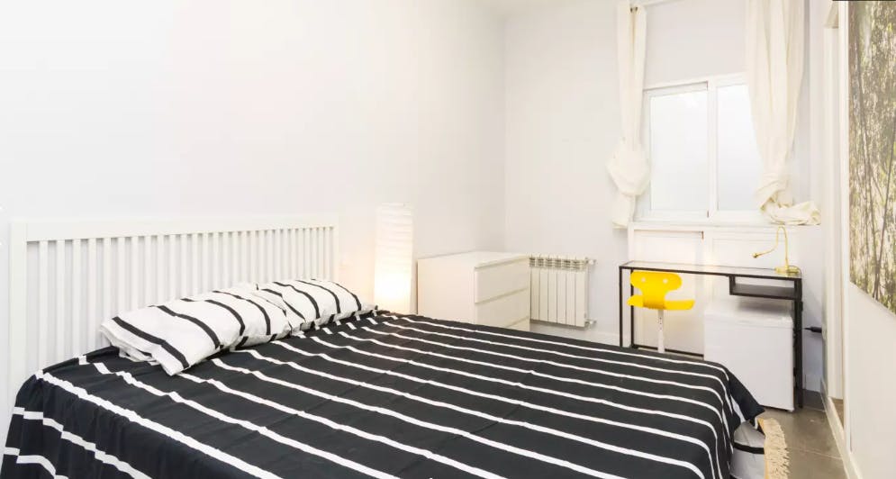 Feel at home in this beautiful property! This apartment is as cozy as it gets. The interiors are very bright, giving the place a wonderful atmosphere. The interiors are wide and spacious, creating a fresh ambiance. This amazing apartment features 6 bedrooms and 2 bathrooms. The entire property is furnished with amazing furniture, and a fully equipped kitchen to cook anything you please, in other words, an exceptional living space! The private room comes with a comfortable bed, a closet with enough space to arrange all your belongings, and a desk where you can study, read, work, or get creative, and you are free to make it your place to relax and reset! The surrounding neighborhood is highly urbanized. Here you will find a lively and vibrant community, several stores and restaurants, and countless entertainment venues. On foot, you can easily reach several bus stops, the Núñez de Balboa subway stop, the supermarket, the nearby park, and everything you'll need to live comfortably! Please be advised of the following: - The apartment has common areas which are shared with the other residents of the apartment (kitchen, bathrooms) - Utilities are included up to €40 - Deposit and Admin fee must be paid before check-in - Check-in out info: Check-in: Monday - Thursday (09:30 - 18:30): Free of charge | Monday - Thursday (18:30 - 21:00): €80 Friday 09:00 - 15:00 Free of charge | Fridays (15:00 – 18:00): €80 Weekends & Holidays (10:00 - 21:00): €80 For hours after those established it would be an extra cost Check-out: before 12:00 (contract ending day) - Check-out cleaning fee: €40 (deducted from deposit) - Rooms for couples: €100 monthly surcharge (where couples are permitted) - Overnight guests: €15 per night - Parties not allowed: Penalty €200 - Documents required: If you are a student: * ID photocopies * Acceptance letter from University * The guarantor's ID photocopy * The guarantor's last three payslips * The guarantor's last notice of assessment (Document from the tax office that states annual income) If you are a professional(s): * Your IDs * Your last three payslips * Your working contract or your last notice of assessment * Recommendation letter...