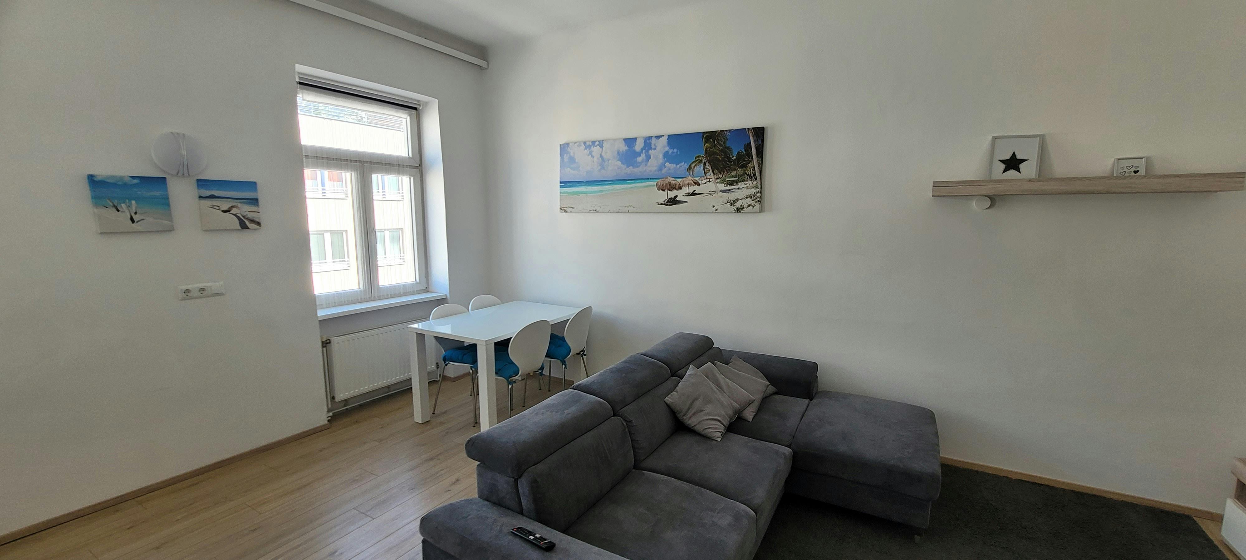 WELCOME TO VIENNA! For holidays or business, this modern apartment inspired with modern amenities and by the central location in the middle of Vienna! The apartment is just a 7 minutes' walk away from the central railway station “Wien-Westbahnhof”, this railway station also leads the Metro lines U3 and U6 and also enjoys other excellent public transport connections. The tram station for the line 9 and 49 are 50 meters away from the apartment's entrance. The following locations are reachable in 5-15 minutes from the short term let : Mariahilfer Straße (Largest shopping street in Vienna), Wiener Stadthalle (Vienna City Hall), Stadthallenbad (Vienna's biggest indoor swimming pool), Lugner City (shopping center), Vienna's main library. The famous sights Stephansdom and Schloss Schönbrunn are reachable by public transport in 20 minutes. The elegant apartment is suitable for a maximum of 4 adults. The apartment impresses with a cozy bedroom, a living room, a fully equipped kitchen, a bathroom with a rain shower and toilet. The bedroom is furnished with a comfortable king size double bed and a wardrobe. The living room is furnished with a comfortable couch, a table with 4 chairs, cable TV, a TV with RGB and HDMI connection, Internet (WIFI), a desk. The kitchen is fully equipped. The kitchen includes a stove, a fridge with freezer, a kettle, a coffee maker, a toaster, dishwasher and all table/kitchen utensils. The bathroom is equipped with an elegant washstand, a mirrored cabinet and a modern shower. Towels are provided. We are looking forward to having you stay with us! :-) WILLKOMMEN IN WIEN! Ob Urlaub oder geschäftlich, diese liebevoll renovierte Altbauwohnung mit moderner Ausstattung begeistert durch ihre zentrale Lage im Herzen von Wien! Das Kurzzeitappartement ist nur 7 Gehminuten vom Wien-Westbahnhof, welcher die U-Bahnlinien U3 und U6 führt, entfernt und erfreut sich außerdem noch weiterer bester öffentlicher Verkehrsanbindungen. Die Straßenbahnlinie 9 in Richtung Westbahnhof bzw. Gersthof und die Straßenbahnlinie 49 in Richtung Dr.-Karl-Renner-Ring bzw. Hütteldorf sind 50 Meter vom Hauseingang entfernt. Des Weiteren ist die U-Bahnstation der Linie U3 Schweglerstraße in 6 Gehminuten erreichbar. Zu erreichen sind außerdem in 5-15 Gehminuten folgende Örtlichkeiten: Mariahilferstraße (Größte Einkaufsstraße Wiens), Wiener Stadthalle, Wiener Stadthallenbad, Einkaufszentrum (Lugner City), Wiener Hauptbücherei. Der Stephansdom, das Herzstück Wiens, ist mit den öffentlichen Verkehrsmitteln in 15 Minuten erreichbar. Das elegant eingerichtete Studio Appartement auf Zeit eignet sich ideal für 1-4 Erwachsene. Das neu renovierte Appartement überzeugt mit einem gemütlichen Schlafzimmer, einem Wohnzimmer, einer voll ausgestatteten Küche, einem Badezimmer mit Dusche und WC. Das Schlafzimmer ist ausgestattet mit einem Kingsize Doppelbett und einem Kleiderschrank. Wohnzimmer ist ausgestattet mit einer sehr gemütlichen Couch, Kabel TV, einem Fernseher mit RGB und HDMI Anschluss, Internet (WLAN), einem Esstisch mit 4 Stühlen und einem Schreibtisch. Die Küche ist sowohl für ein schnelles, als auch ein gediegenes Kochen ausgelegt. Die Küche beinhaltet ein Ceranherd, einen Kühlschrank mit Gefrierfach, einen Wasserkocher, eine Kaffeemaschine, einen Geschirrspüler und sämtliche Tisch-/Küchenutensilien. Das Badezimmer ist ausgestattet mit einem eleganten Waschtisch, einem Spiegelschrank und einer Dusche. Natürlich werden auch Handtücher zur Verfügung gestellt. Wir freuen uns auf Ihren Aufenthalt bei uns! :-...
