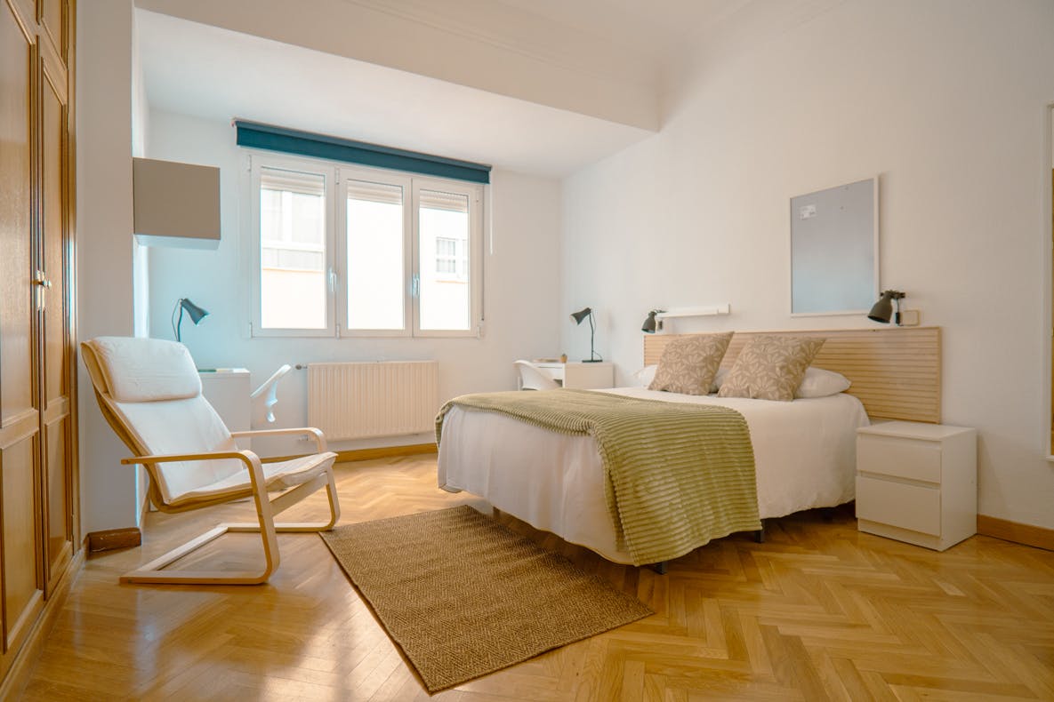 HABITACIÓN CON CAMA DOBLE La habitación cuenta con cama matrimonial, perfecta para parejas, zona de escritorio y armario. El apartamento cuenta con cocina completamente equipada, 2 baños compartidos entre máximo 10 personas. Nuestro coliving está enfocado a estudiantes y jóvenes profesionales, generalmente entre 18 y 40 años, y ambiente internacional. Buscamos que disfrutes de Madrid y que tu estancia sea cómoda, por lo que nuestros asesores te ayudaran ante cualquier duda. Al hacer tu reserva queremos que disfrutes con nosotros, estés cómodo y cuentes con nuestro equipo y comunidad, por ello no solo te ofrecemos un alquiler, sino que alojándote con nosotros: -Formarás parte de nuestra comunidad, teniendo acceso a eventos y actividades semanales para que descubras Madrid y te sientas como en casa siendo uno más. -Limpieza semanal de las zonas comunes. -Servicio de mantenimiento. -Posibilidad de empadronamiento (City registration) para estancias a partir de 6 meses -Servicio Medico 24/7 por Quirón Salud -Atención al cliente 24/7 a través de nuestro departamento de Atención al coliver -Invitación a eventos y actividades especiales Condiciones: -Un mes de Fianza -Membership Club -Suministros incluidos en el precio como electricidad, agua, calefacción y internet de alta velocidad (hasta un máximo de 70€ ) -Consultar estancia mínima -De documentación únicamente solicitamos DNI o pasaporte Nuestro coliving está enfocado a estudiantes y jóvenes profesionales que quieren disfrutar de una estancia en Madrid. La ubicación es inmejorable en la zona de Chamberí. Bien comunicado, se encuentran edificios de gran importancia cultural y de ocio, y cerca de las paradas de metro Islas Filipinas y Moncloa, líneas 7, 3 y 6 de metro que conectan directamente con el centro de Madrid. Además, cuenta con numerosas paradas de autobuses con excelentes conexiones por toda la ciudad rodeado de restaurantes, cafés y tiendas. Check in: Lunes - Domingo: 15:00 - 24:00 Check-out: Antes de las 11:00 Durante el fin de semana o festivo el check-in es posible si se coordina antes del viernes o el último día laborable antes de las 13h00. 📅 CONTRATO QUINCENAL En el mes de entrada o de salida: - Si te quedas 14 días o menos, pagarás la mitad del alquiler de ese mes. - Si te quedas más de 14 días, pagarás el alquiler del mes completo. (El importe a pagar de cada mes aparece calculado en el resumen de pagos) 💵 Payments before the check-in: Once the reservation is confirmed, you will be required to make the additional payments (security deposit, etc.) through our secure payment system before the move-in date...