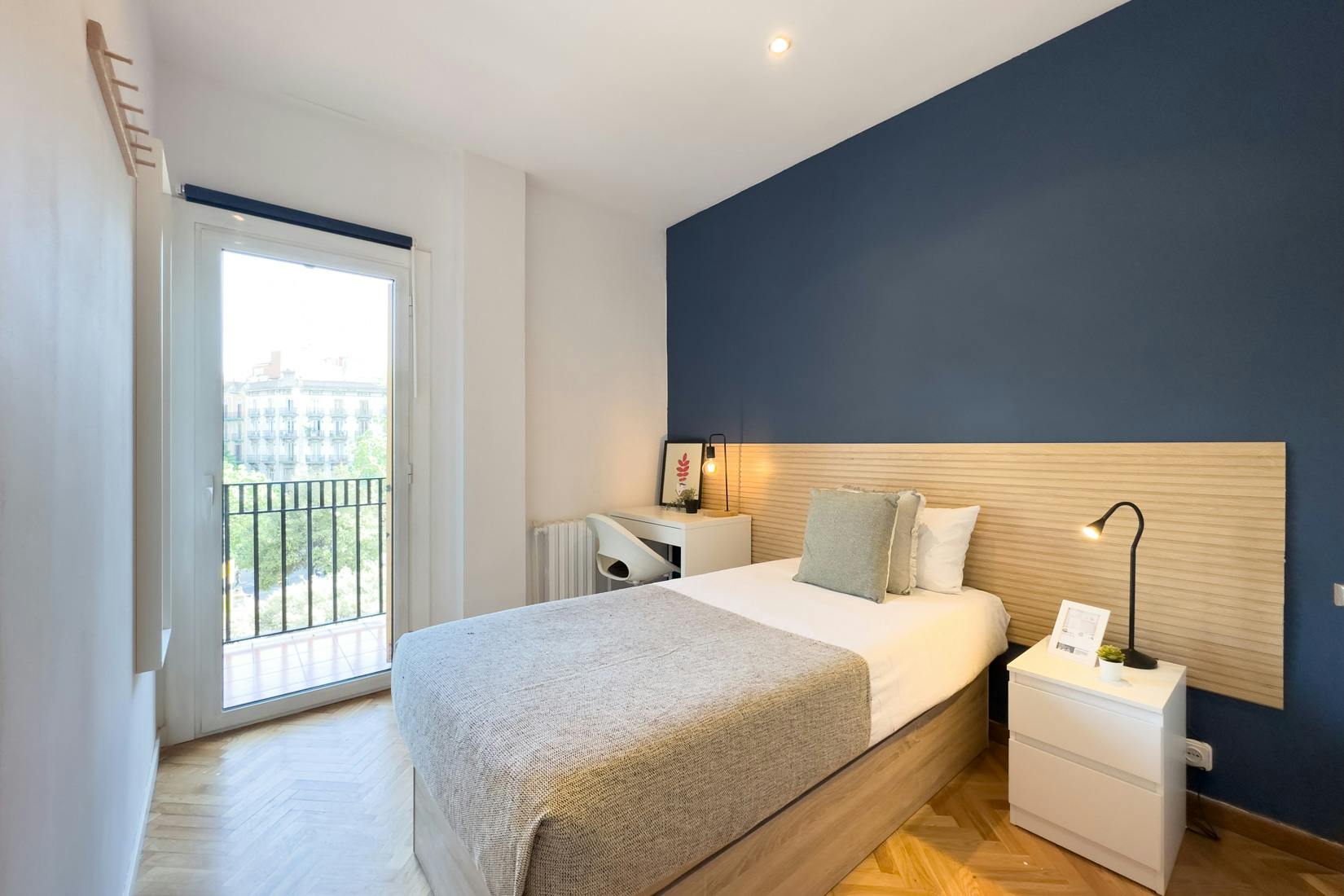 HABITACIÓN INDIVIDUAL Y BALCÓN La habitación cuenta con cama individual, zona de escritorio y armario. El apartamento cuenta con cocina completamente equipada y los 3 baños serán compartidos por un máximo de 9 personas. Nuestro coliving está enfocado a estudiantes y jóvenes profesionales, generalmente entre 18 y 40 años, y ambiente internacional. Buscamos que disfrutes de Barcelona y que tu estancia sea cómoda, por lo que nuestros asesores te ayudaran ante cualquier duda. Al hacer tu reserva queremos que disfrutes con nosotros, estés cómodo y cuentes con nuestro equipo y comunidad, por ello no solo te ofrecemos un alquiler, sino que alojándote con nosotros: - Formarás parte de nuestra comunidad, teniendo acceso a eventos y actividades semanales para que descubras Barcelona y te sientas como en casa siendo uno más. - Limpieza semanal de las zonas comunes - Servicio de mantenimiento - Posibilidad de empadronamiento (City registration) para estancias a partir de 6 meses - Servicio Medico 24/7 por Quirón Salud - Atención al cliente 24/7 a través de nuestro departamento de Atención al coliver - Invitación a eventos y actividades especiales Condiciones: - Un mes de Fianza - Membership Club - Suministros incluidos en el precio como electricidad, agua, calefacción y internet de alta velocidad (hasta un máximo de 70€ ) - Consultar estancia mínima - De documentación únicamente solicitamos DNI o pasaporte Nuestro coliving está enfocado a estudiantes y jóvenes profesionales que quieren disfrutar de una estancia en Barcelona. La ubicación es inmejorable en la zona de La Dreta de l'Eixample, Eixample. Bien comunicado, se encuentran edificios de gran importancia cultural y de ocio, y cerca de las paradas de metro Diagonal y Verdaguer, línea L3, L4 y L5 de Metro, que conecta directamente con el centro de Barcelona. Además, cuenta con numerosas paradas de autobuses con excelentes conexiones por toda la ciudad. Check-in: Lunes: 15:00 - 21:00 Martes - Viernes: 15:00 - 22:00 Sábado: 15:00 - 18:00 Domingo/Festivos: el check-in es posible con previo aviso y coordinación. 📅 CONTRATO QUINCENAL En el mes de entrada o de salida: - Si te quedas 14 días o menos, pagarás la mitad del alquiler de ese mes. - Si te quedas más de 14 días, pagarás el alquiler del mes completo. (El importe a pagar de cada mes aparece calculado en el resumen de pagos) 💵 Payments before the check-in: Once the reservation is confirmed, you will be required to make the additional payments (security deposit, etc.) through our secure payment system before the move-in date...
