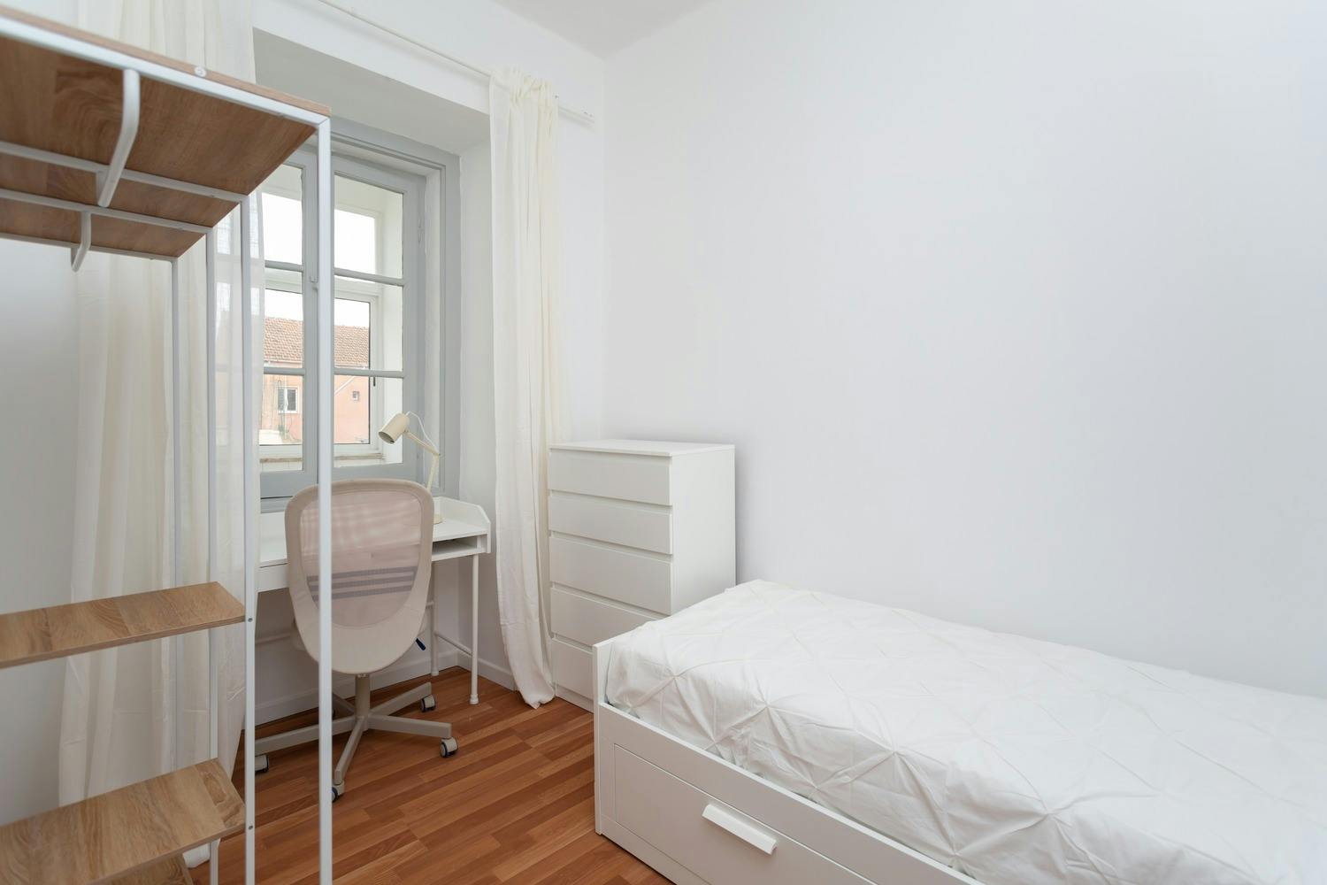 The cosy atmosphere of these rooms invites you to relax. Furnished with comfortable double bed, quality mattress, desk and ample storage space for all your belongings. Located in Avenida da Liberdade, this home offers easy access to a variety of transports, such as the metro (Avenidas - blue line). Pharmacies, supermarkets and universities are conveniently located nearby, making everyday life more convenient. The house itself is spacious and well equipped, with 6 bedrooms and 2 bathroom.The kitchen has all the necessary appliances and utensils for cooking meals. Please note: - Payment: Must be completed 72 hours before check-in directly to the landlord. This includes the last month’s rent, security deposit, and Administration fee. - Monthly Cleaning Fee: €25. Additional cleaning available upon request. - Cleaning of the common areas is provided at least twice a month. - Utilities: Included up to €25 per tenant. - Bedding: Pillows, duvet, and bed sheets are not provided. - Check-ins: Available Monday to Saturday, from 4:00 PM to 7:30 PM. No check-ins on Sundays or public holidays. A valid identification document is required to complete the lease agreement. - Your check-in will only be authorised 24 hours after the payment has been confirmed in our bank account and the contract has been signed. - Overnight guests may incur a fee - please check this with the landlord...