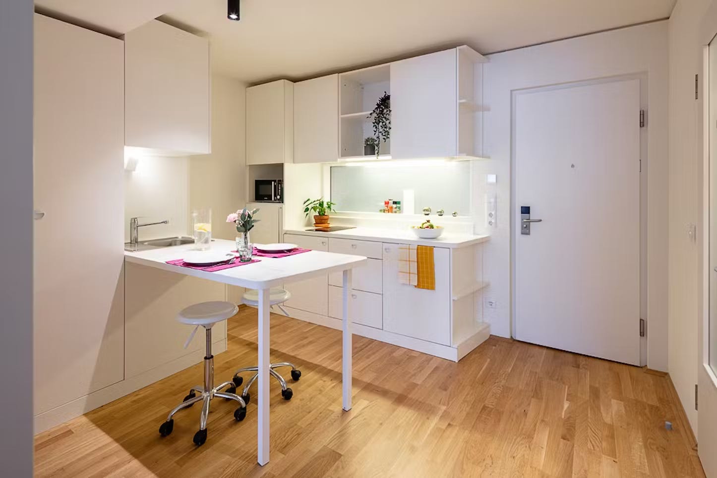 A private room in a flat share of 2 - The View Apartments are on the top floors. In these shared flats, life and living are as they should be: with a galley kitchen, designer bathroom and a smart, cosy interior and a great view. The great thing is you can choose! Of course, you also have your private space, and only share the bathroom and kitchen. You can be absolutely flexible. These stylish, fully-furnished and thoughtfully equipped apartments leave room for your desires. ~ READY TO MOVE-IN The apartment is bright, friendly and fully furnished. You only need to bring your favourite plant, poster or anything else you fancy to add your personal touch. ~ FRENCH WINDOW We offer you the full view. Your room will be light and airy thanks to the floor to ceiling French window. ~ BE YOU OWN CHEF Pizza or a five-course meal for your date in your own apartment? In your private kitchenette equipped with a microwave, refrigerator and ceramic glass cooktop you can be a master chef. ~ SHOWER POWER Your spacious designer bathroom has a big shower, a large mirror and a toilet. But the best thing about it is that you do not have to share it with anyone. ~ DESK INCLUDED Best conditions for successful studying. Of course we have equipped your apartment with a desk. Completed with a comfortable chair and lots of light from outdoors – you’re good to go. ~ HIGH SPEED INTERNET Connect and Network. High-speed Internet und unlimited downloads. This way you can (hidden) your family abroad, download university documents or just surf the web. ~ BED AND STORAGE COMPARTMENT We know there are more important things to do than tidying your room. That’s why there is a large storage compartment beautifully integrated into the design of your bed. ~ SAFE WITH A DIGITAL LOCK Security is a top priority. That is why each room is equipped with its own personal safe so you can relax knowing your valuables are safely locked away. ~ IN ADDITION TO USE 400 sqm Roof-Top Terrace, Fully equipped Fitness room, Study lounge, Washing lounge, Green garden, Party with dolby surround sound ~ FREE SERVICE Using the Learning Lounges, using the Fitness room, Resident Manager on site, Monthly cleaning, Technical repair service LOCATION Leoben, the second-largest city in Styria, the green heart of Austria, as it is affectionately called. For some, this splendid corner of the world is a cultural city; for others, it’s a university town or commercial city. Why is that? Because of the incredible variety that Leoben has to offer. From culture to cuisine, from parks to mountains, from the Schwammerlturm to Montan University: Leoben is lived history – combined with vibrant living and open, hearty residents that you will meet everywhere you go, for example, at Leoben’s main square, which has one of Austria’s largest outdoor cafés. CHARGEABLE SERVICES - A clothes wash, including the dryer: 3.60,- - 1 event in the party room including Final cleaning: 50,- We offer special laundry rooms with several machines depending on the location. These might have an extra cost for usage. For more information please just write us a message. MOVE IN IS POSSIBLE DURING THE MONTH, HOWEVER THE RENTAL CONTRACT STARTS FROM THE FIRST OF THE MONTH. A Registration is mandatory! The first month rent will be completed through HousingAnywhere. The deposit and fees need to paid to us directly and should be completed before moving in. Please note: - Deposit differs slightly depending on the length of stay...