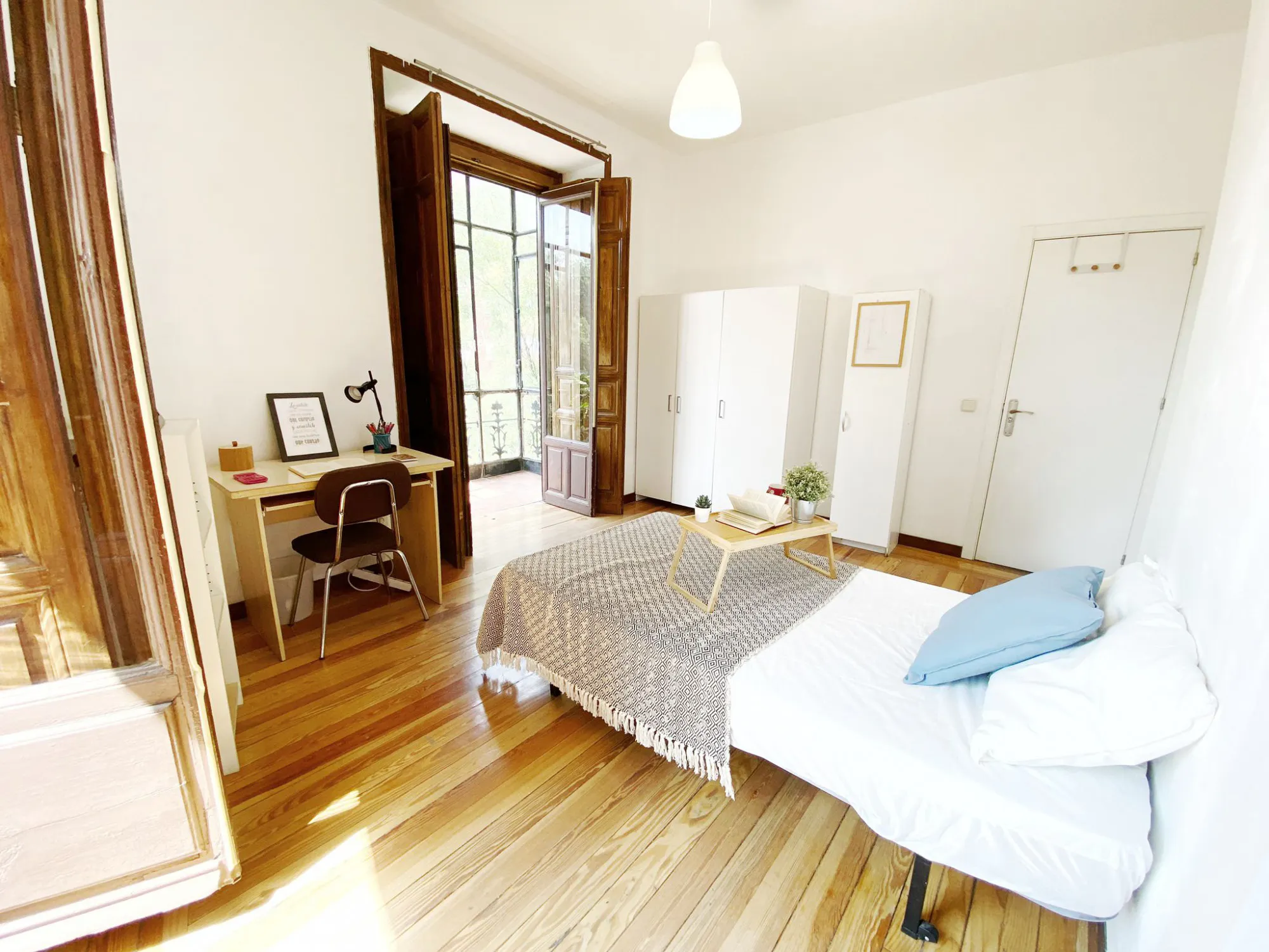Water, electricity and gas supplies are not included, we charge a fixed fee for supplies based on the annual history of the flat, you can see the amount in the summary of payments. Shared flats have internet access. If you have questions about how to book, you can consult our manual. The bedroom is amazing, very bright, spacious and cozy. Perfect for students who want to relax in their room and have a good time in the common areas. The room includes a 105 cm bed, desk, chair, wardrobe, bookshelves and two balconies, perfect to enjoy the sun and fresh air of Chamberí. It’s located in the Almagro neighborhood, in the district of Chamberi. You’ll be able to easily access universities such as CEU (on its campus from the center), Complutense of Madrid and Politecnica. In the area you’ll also find lots of shops, restaurants and museums such as the Geominero, Sorolla, Canal de Isabel II or the Natural Science Museum and parks like Santander Park. The closest metro stations are *Iglesia (Line 1) and Alonso Cano (Line 7).* Rental conditions: - Free Check-in time: 9:00h - 18:00h from Monday to Friday. - We offer to pick up service from the airport with a cost of 65€+VAT - The utility costs are as described in the listing. Nevertheless, if the usage of utilities exceeds the amount that the fixed price for utilities covers, it might be that extra costs will have to be paid. Please, be aware that HousingAnywhere is an online booking platform. Therefore exchanging contact details and offering viewings is not possible. If you would like to reserve this accommodation, send me a booking request or a message and I will get back to you as soon as possible....
