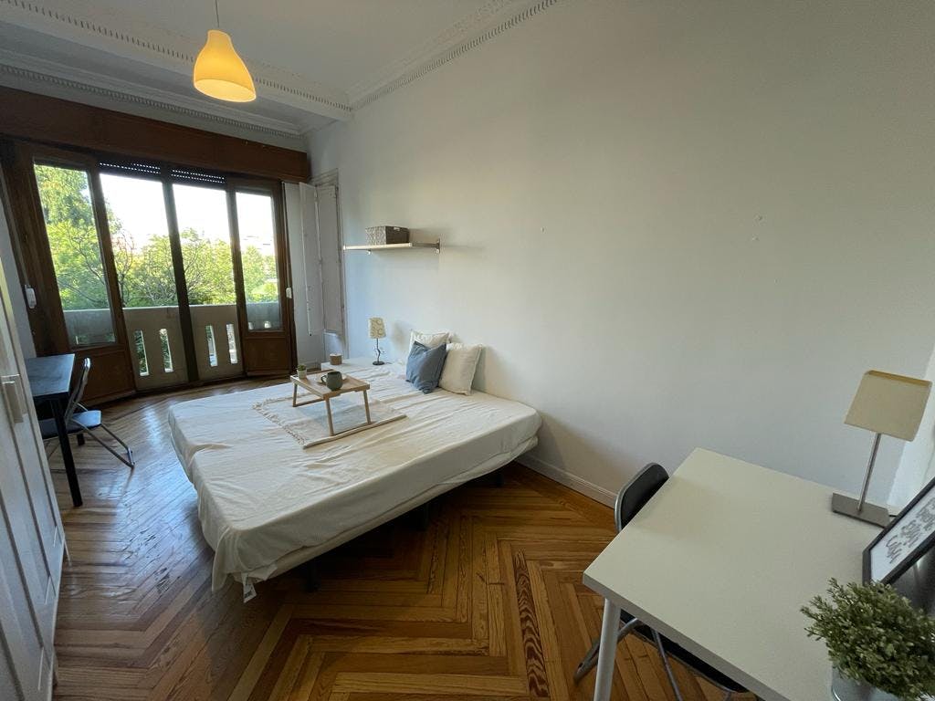 Furniture and bed size may vary from the images shown. Located near the university area, this student room for rent is the biggest in the whole apartment, with a 135 cm bed, ideal for a person! It has an amazing street view, wooden floors, study desk and two wardrobes. With so much room, you will truly feel like a Madrilenian socialite. It’s located in the Rios Rosas neighborhood, in the centric district of Chamberi. You’ll be able to easily access universities such as CEU (on its campus from the center), Complutense of Madrid and Politecnica. In the area you’ll also find lots of shops, restaurants and museums such as the Geominero, Sorolla, Canal de Isabel II or the Natural Science Museum and parks like Bravo Murillo Park. The closest metro station is *Ríos Rosas (Line 1)*. Rental conditions: - Free Check-in time: 9:00h - 18:00h from Monday to Friday. - We offer to pick up service from the airport with a cost of 65€+VAT - The utility costs are as described in the listing. Nevertheless, if the usage of utilities exceeds the amount that the fixed price for utilities covers, it might be that extra costs will have to be paid. Please, be aware that HousingAnywhere is an online booking platform. Therefore exchanging contact details and offering viewings is not possible. If you would like to reserve this accommodation, send me a booking request or a message and I will get back to you as soon as possible....