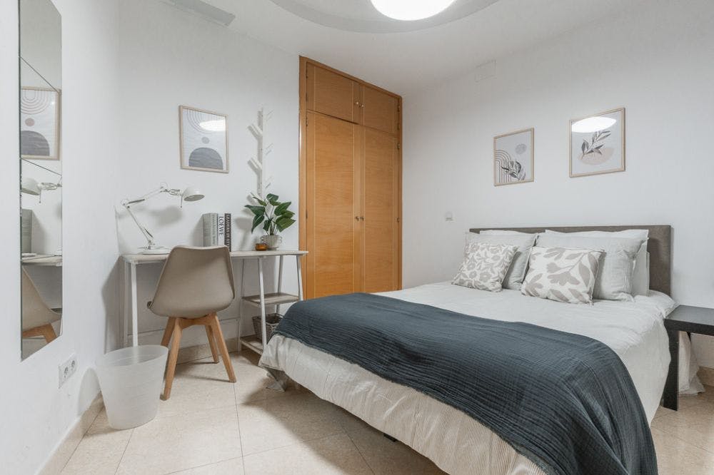 Beautiful flat in Madrid, located in Plaza de Santa Cruz A large 11 bedroom flat. Most of the rooms have balconies and 7 of them have an ensuite bathroom. There are, additionally, 2 shared bathrooms in the common areas. The flat has a fully furnished living room with a flat screen TV. It also has a fully equipped open kitchen with all the amenities you need to enjoy spending time with your flatmates.The neighbourhoood is located in the very centre of Madrid, and it's surrounded by many of Madrid’s most famous attractions: Puerta del Sol, Plaza Mayor, Palacio Real, Gran Vía, Fuencarral and much more. Around Plaza de Santa Cruz you will find several bars, restaurants and an endless amount of shopping options! It's also very well connected, here you can find Sol and Ópera metro stations. Sol is located in the very centre of Madrid and is surrounded by many of Madrid’s most famous hotspots. Within walking distance you will find the Plaza Mayor, Palacio Real, Gran Vía, Fuencarral and much more. Around the Plaza you have a huge entertainment area with several bars, restaurants and an endless amount of shopping options! Sol is also the home of the most popular metro station, with connections to the Renfe and many metro lines. Metro Sol – lines 1, 2 and 3 Metro Gran Vía – lines 1 and 5 Metro Callao – lines 3 and 5 Metro Opera – lines 2, 5 and R Renfe Train Station – lines 1 and 5 - Puerta del Sol - Gran Vía - Cine Ideal (English movie theatre) - Calle Fuencarral - Plaza Mayor - Palacio Real - Don't smoke - Pets are not allowed - Parties are forbidden - Take out the trash daily - Short-term visits are allowed - (hidden) informs that in this flat a device has been installed in order to allow the monitoring of the noise level (decibels) 24 hours a day. The system emits an alert whenever the sound level exceeds the maximum allowed by the Community of Madrid, mainly between 11pm and 6am. Interior room in Plaza de Santa Cruz Cozy interior room in a charming flat in the centre of Madrid. It has a double bed (135 cm), a built-in wardrobe, a bedside table and a desk. It also has a fully furnished private bathroom, its own lock and electric heating. It has a window with views to the interior courtyard of the building. The size of the room is 8 m2, perfect for young international workers and students. *Bedding is not included, only a mattress cover is provided. Please keep in mind that the amount requested in the "other additional costs" field refers to tenant assistance coverage....